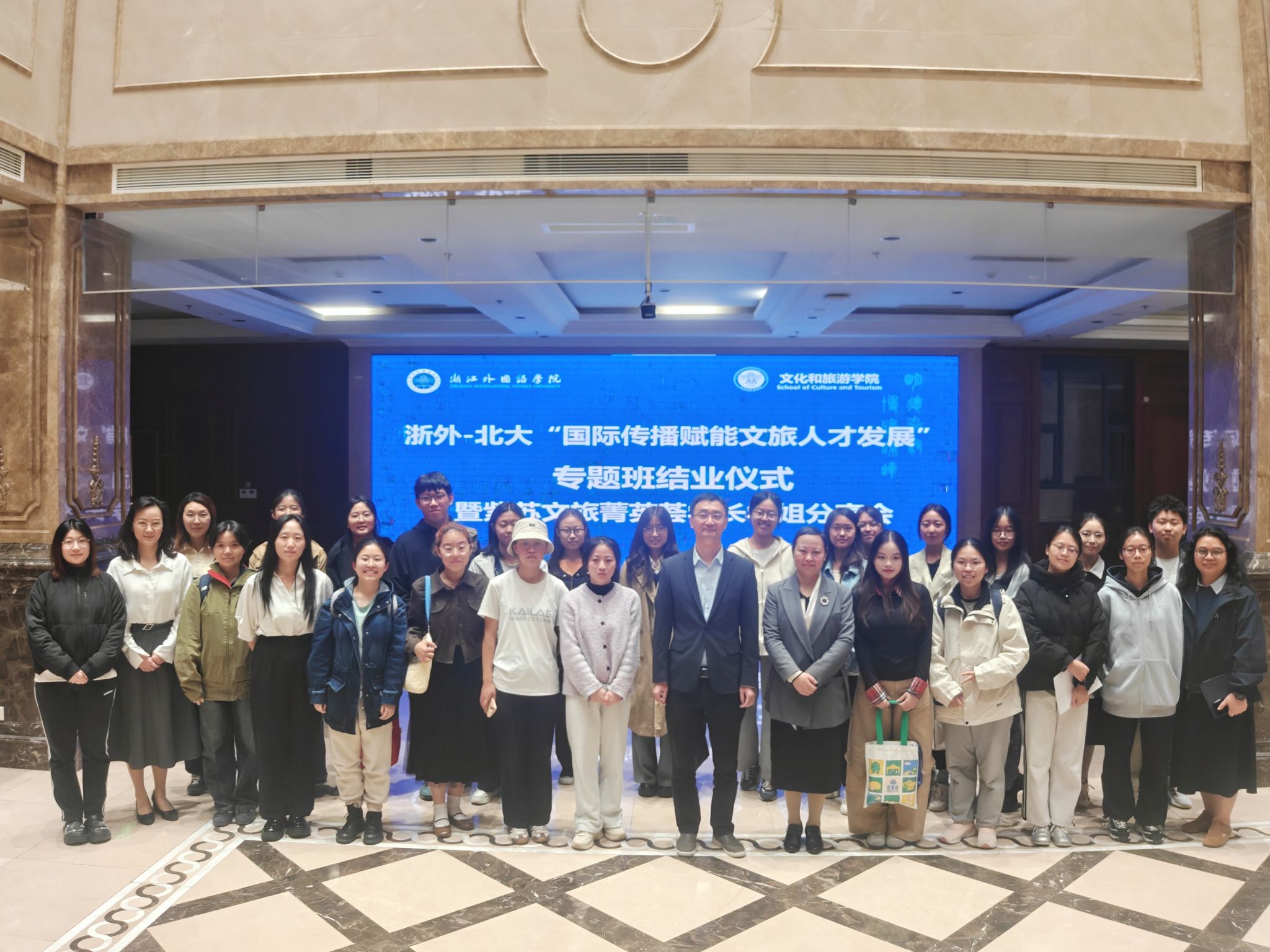 此次结业典礼为专题班的学习画上圆满句号,也标志着学员们迈向文旅传播新征程的起点。他们将以浙外与北大共同淬炼的专业素养与跨文化视野,在国际舞台持续讲述中国故事,为推动文明互鉴、促进文旅产业高质量发展贡献青春力量。