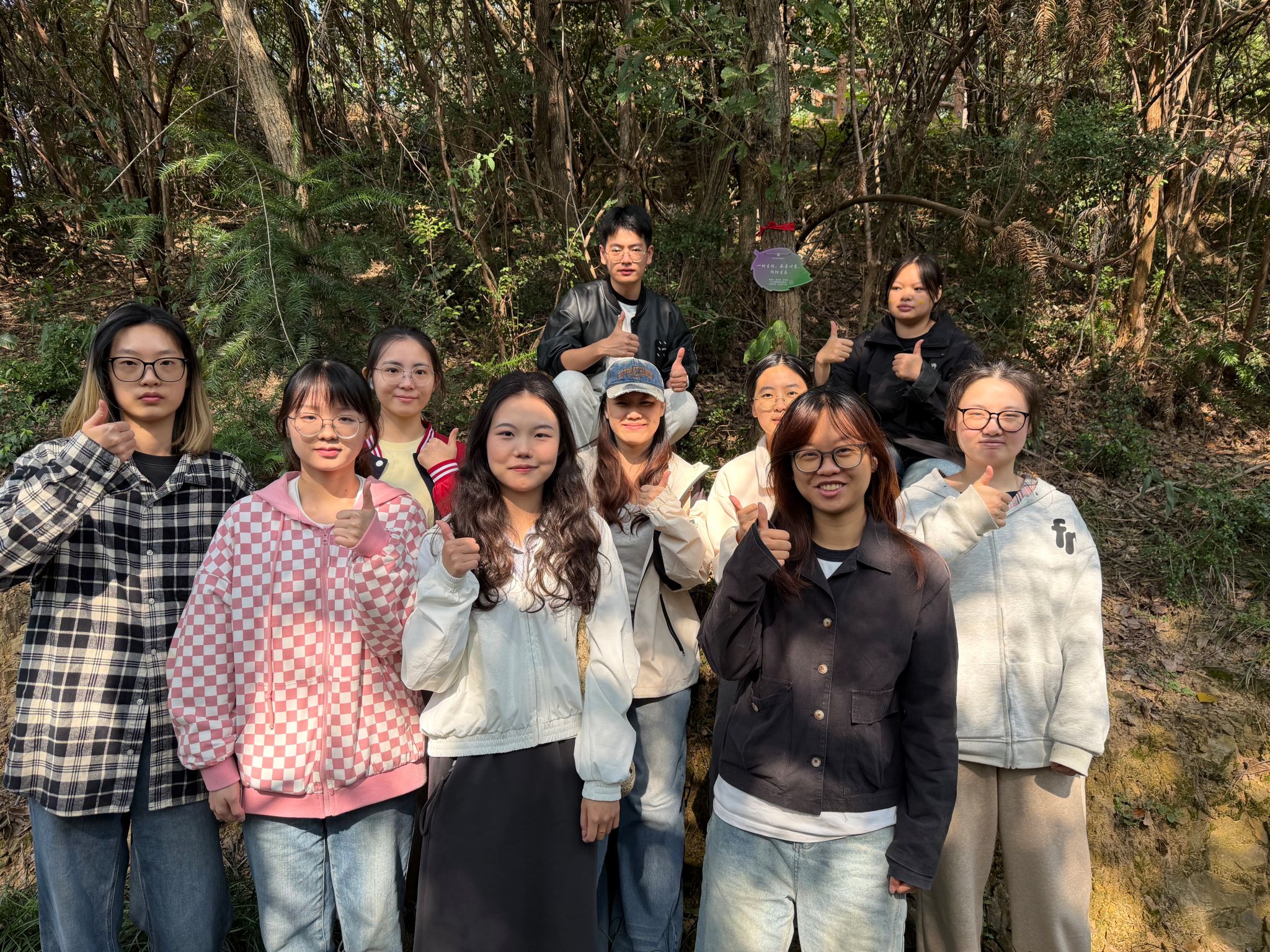 在主题党日活动现场,22级预备党员李茹欣说:“走在寻语山的小径上,两旁树木悬挂的认领牌在风中轻晃,这些树因员工们的这份牵挂而有了更鲜活的生命,如同被赋予了灵魂。员工们用这种方式告诉我们:母校是永远的根系,员工是伸展的枝叶,个人的成长与母校的发展本就是同气连枝,彼此滋养,共同繁茂。”23级预备党员许千诺把写着“拓新立志,逐光而行”的树牌牢牢系紧。“粗糙的树干让我想到自己正在母校‘扎根’,课堂、老师、点滴养分都在帮我‘立住’。今天我把学长学姐的心意挂上,明天我也想长成能回赠母校的参天大树。”24级正式党员肖欣今天担任第二组的总召集人,带领组员向2009、2010届员工隔空喊话,“以树为礼,以声传情,让温暖有回响。”肖欣说,当声音回荡林间,她第一次真切体会到“组织活动既要统筹全局,更要怀揣真诚”。25级预备党员高远杰和同学合力将“十年树木,百年树人”牌挂稳。作为本次第四组的召集人,他把现场总结成一句“微党课”:“树木扎根沃土,青年党员也要在组织培养中‘寻根铸魂’;树木向阳成长,我们更要在实践担当中砥砺初心。今天,我们认领的是绿色,更是跨越时空的家国担当。”