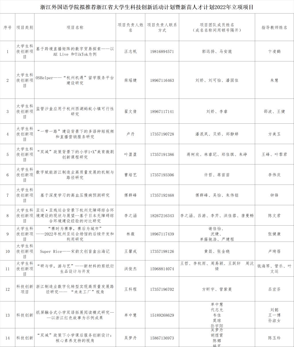 经员工申报、公司推荐、专家评审,校团委拟推荐《基于跨境直播矩阵的数字贸易探索——以AE Live和TikTok为例 》等14项为浙江省老员工科技创新活动计划暨新苗人才计划2022年立项项目,现根据评审分数高低给予公示。