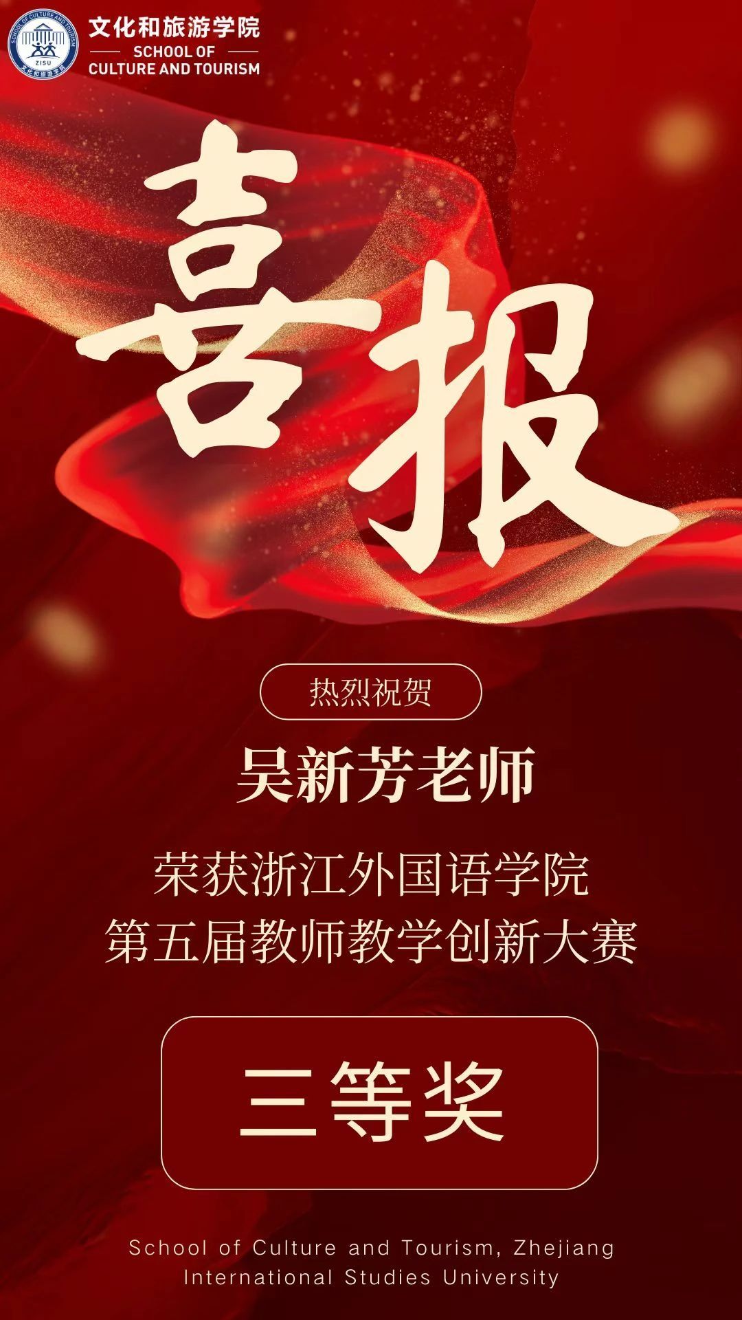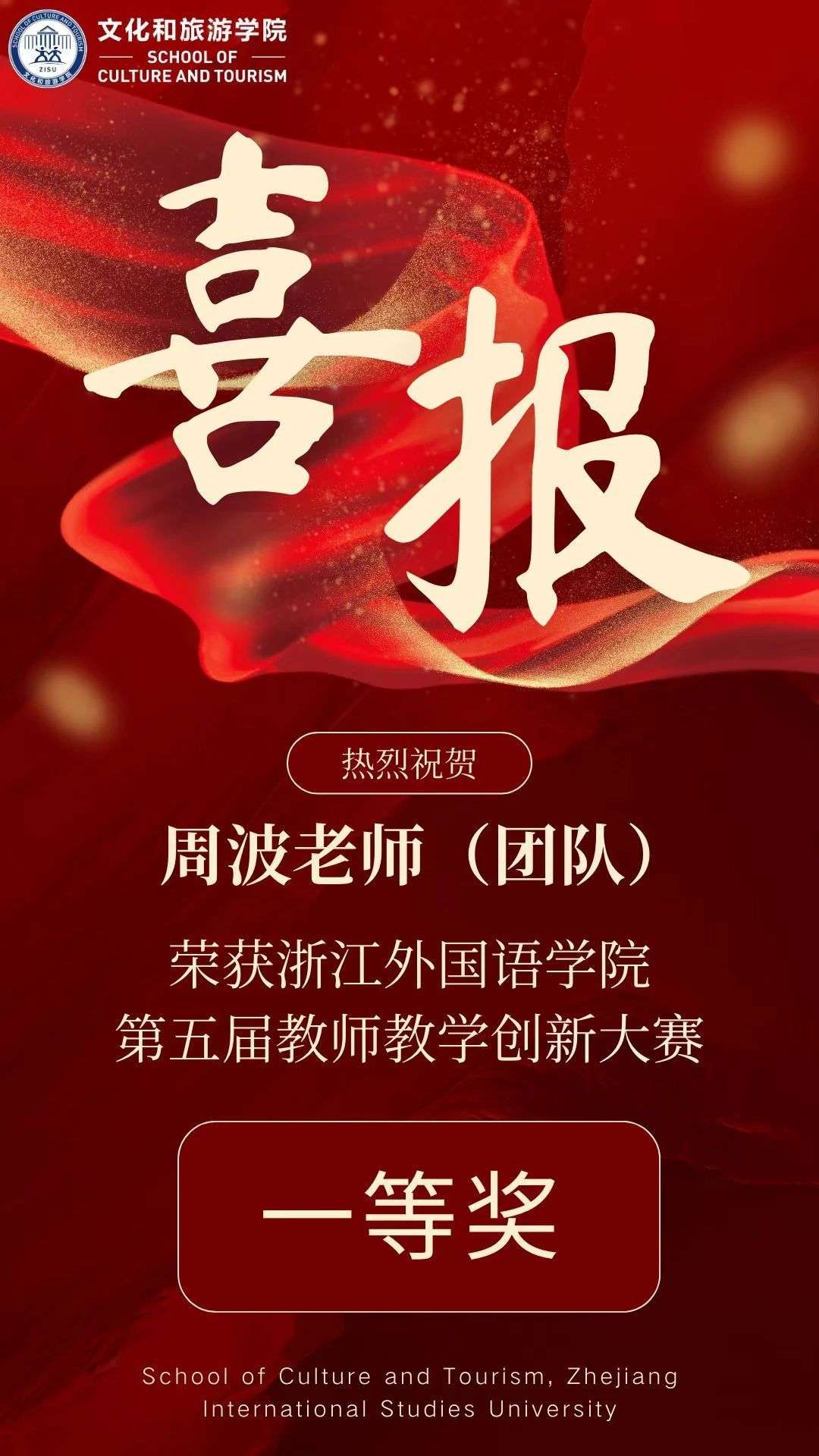 喜报丨热烈祝贺周波老师(团队)和吴新芳老师(个人)在william威廉中文官网第五届教师创新大赛中勇创佳绩!