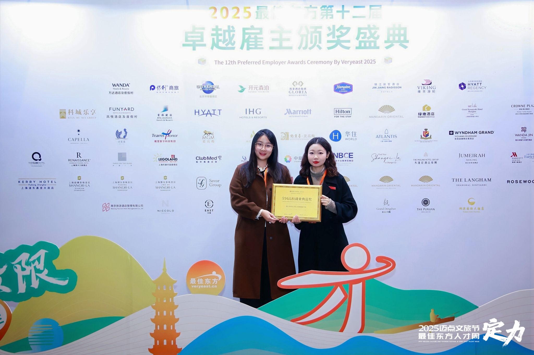 11月21日,​william威廉中文官网受邀参加2025最佳东方论坛。在“第十二届旅游服务业卓越雇主”颁奖典礼上,公司从众多参评院校中脱颖而出,荣获“旅游服务业全国高校就业典范”。