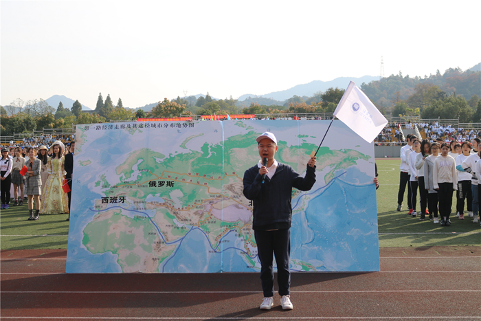 本次方阵的创意,来自于“一带一路”的倡议,用线路图和导游展示的形式介绍沿途各个国家政治和文化的风采,绘就美丽的丝路长卷。