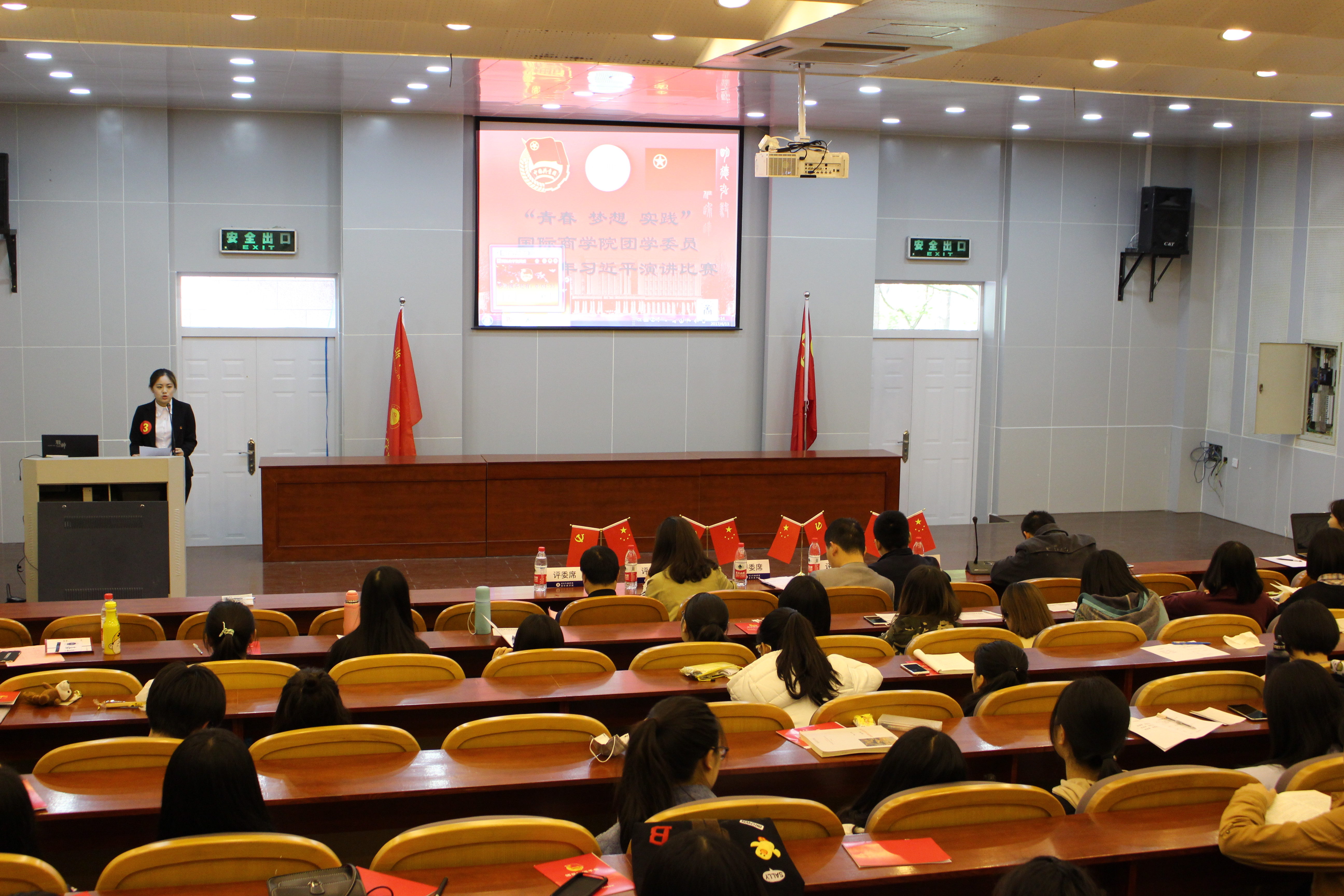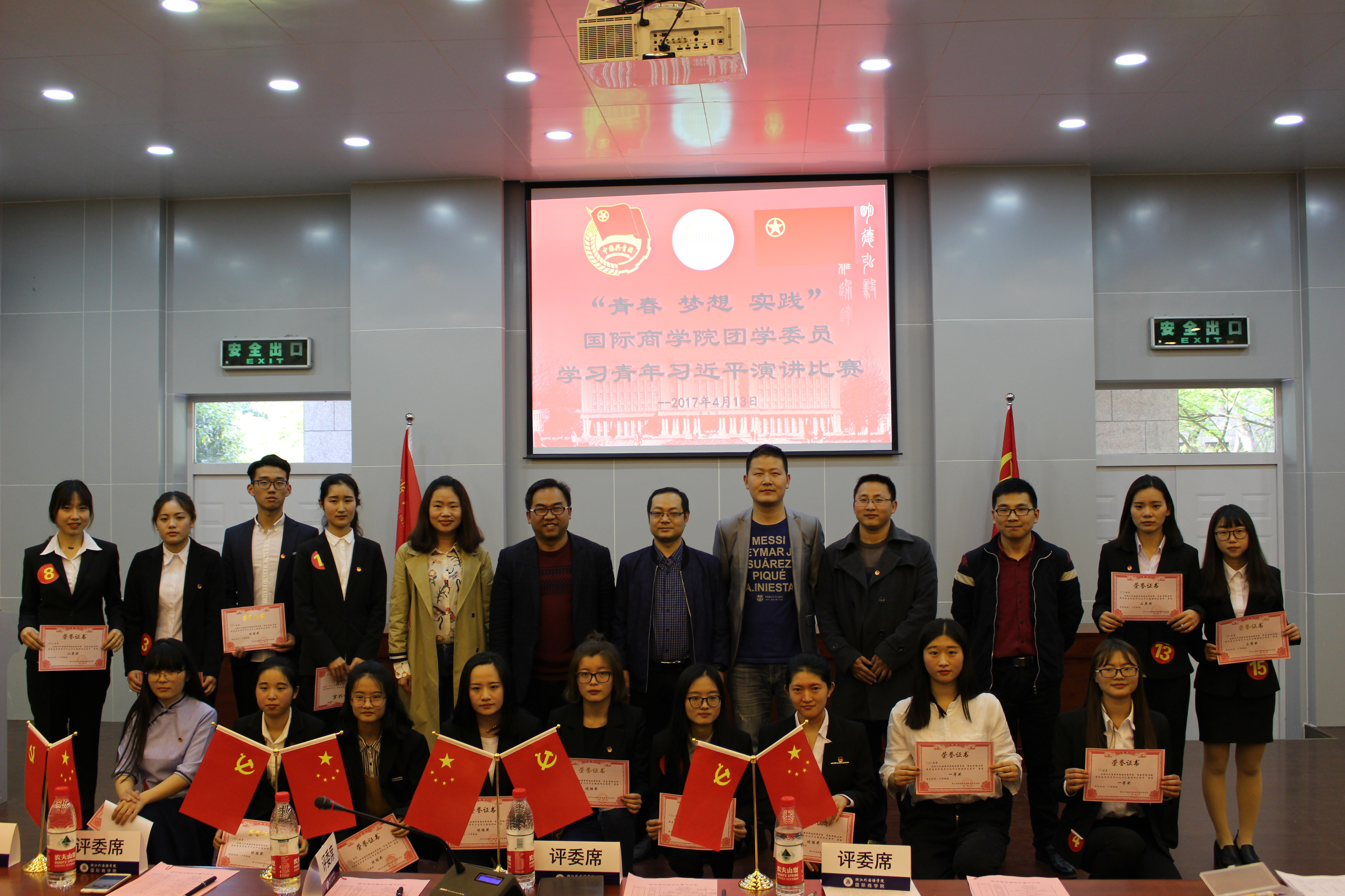 为深入引领公司青年学子学习青年习近平,指明当代青年成长成才的正确方向,4月13日下午,在望D-131举行了以“青春,梦想,实践”为主题的国际商公司团学委员学习青年习近平演讲比赛。天能集团动力能源公司党群办主任黄炜,校团委办公室主任吴宗笋,辅导员周长喜、何扬阳、王化明受邀担任评委,公司党总支副书记周明宝出席比赛,来自公司六大组织的青年骨干观看了比赛。