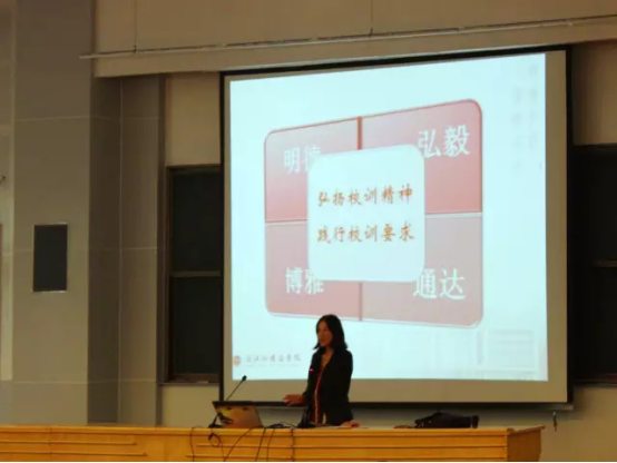 同时,叶丽红结合专业向新生做了关于未来新零售,新技术,新金融,新能源,新数据的讲座,指明商公司员工未来的方向。她指出,大学学习不仅要学好专业知识,还要注重自身综合素质的培养,学会为人处事,重视细节。在讲座过程中,她还多次引用当今各行业精英人物的成功案例,激励同学们要坚持不懈,用心专注,奋发向上。