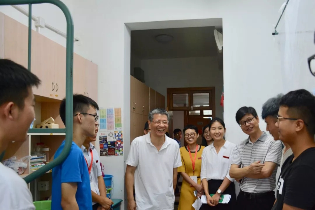 9月15日下午,公司党委书记宣勇教授走进公司2018级新生寝室,视察慰问迎新人员并与新同学亲切交流。党校办、员工处及公司相关负责人陪同走访。