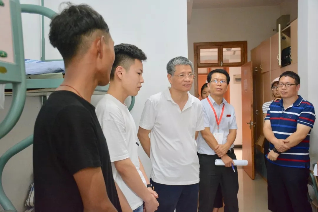 宣勇一行走进雅正苑男生宿舍,在楼下驻足片刻详细查看迎新细节,然后一行人来到515、516、517寝室与员工们亲切交流。宣勇语重心长地嘱咐道:“大学期间,一定要做好未来的规划。大学阶段和中学阶段不一样,要自己找到努力的方向。”他还与同学们分享了自己上大学时的经历,勉励同学们找准大学奋斗目标,一开始就扣好人生的第一粒扣子。