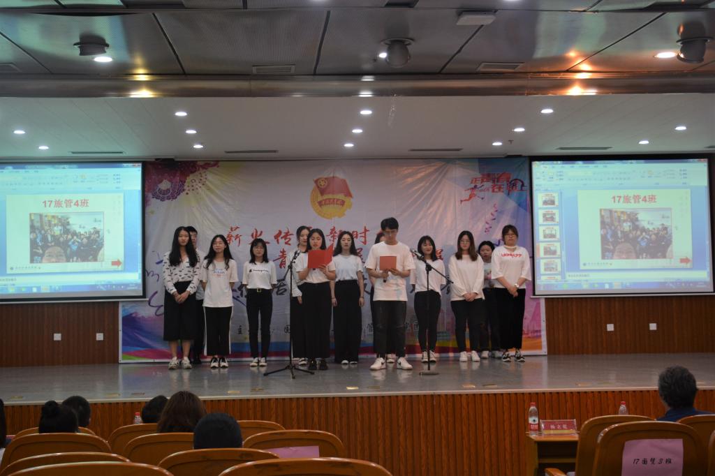 在才艺展示环节,各团支部将精心准备的节目纷纷呈现给在场的评委和观众。17旅管3班团支部带来了别具一格的弗朗门戈舞蹈,节奏欢快,热情洋溢,观众仿佛可以透过舞女飞扬的裙摆和凛然的动作感受到独特的西班牙式热情。17旅管4班团支部演唱的西语版追光者,结合了本专业语言特色,多变的合唱配合,赢得观众的掌声。17国贸3班团支部创新的以现代歌舞剧的形式将表演和合唱相结合,将一位大学学渣改变成学霸的故事以诙谐的方式表达出来。