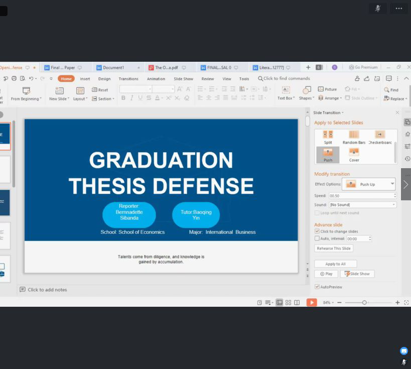 202079日下午,公司举行国际商务专业联合培养硕士研究生开题答辩会。鉴于肺炎疫情等原因,本次开题答辩采用线上形式。