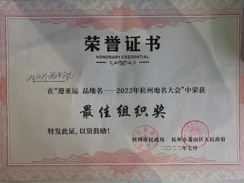“迎亚运 品地名——2022年杭州地名大会”公司获总决赛最佳组织奖和团队赛铜奖