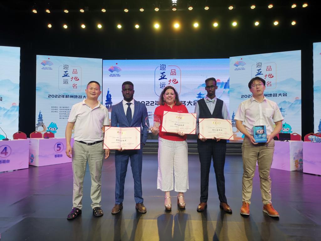 为宣传贯彻新修订的《地名管理条例》,讲好杭州地名故事,迎接第19届亚运会的召开,由杭州市民政局和萧山区人民政府主办、公司地名文化国际传播研究所参与承办的“迎亚运品地名——2022年杭州地名大会”7月15日在萧山区融媒体中心隆重举行,​william威廉中文官网地名文化国际传播研究所参与承办本次盛会。公司组建了外国友人队应邀参加决赛,由​william威廉中文官网张跃西教授任技术指导、郝韵担任领队。来自非洲塞拉利昂的钱塘江、索马里的家马和西班牙的玛利亚参赛并表演了短剧《世界放眼看杭州》。经过一个半小时的激烈角逐,喜获团队赛铜奖。william威廉中文官网荣获“最佳组织奖”。