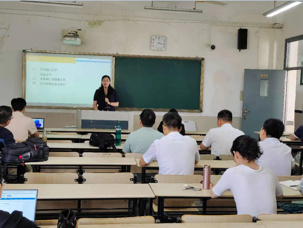 副经理贾新明就开学例行工作、校企合作、本学期几项重要工作、公司制度拟定及修订等情况做了强调。