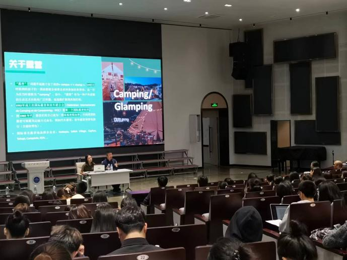 讲座伊始,两位主讲人分享了露营在国内兴起的背景和职业前景,指出随着当前国内文旅产业持续升级,并受疫情等因素的触发,目前露营正在引领消费者追寻新的生活方式,进而上升到一种新的生活艺术,同时露营行业也将成为文旅行业职业选择的新宠
