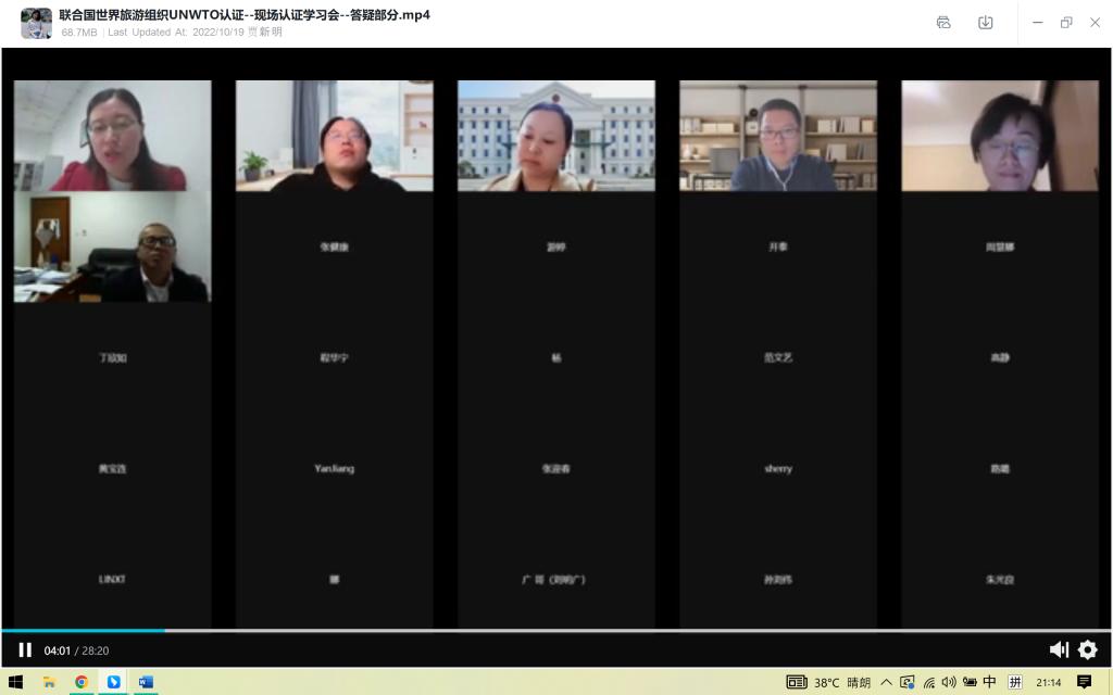 为进一步加深对联合国世界旅游组织教学质量评估的认识了解,提升前期准备工作质量,积极学习借鉴其他院校成功经验,10月18日晚,公司特别邀请上海对外经贸大学旅游系主任张兆琨博士开展线上经验分享会。公司教务处处长梅雪峰、评估处处长阮建苗、国际处副处长陶国霞等领导以及员工处、英文公司和实验中心的有关老师出席会议,公司领导班子和全体教职工参加会议。