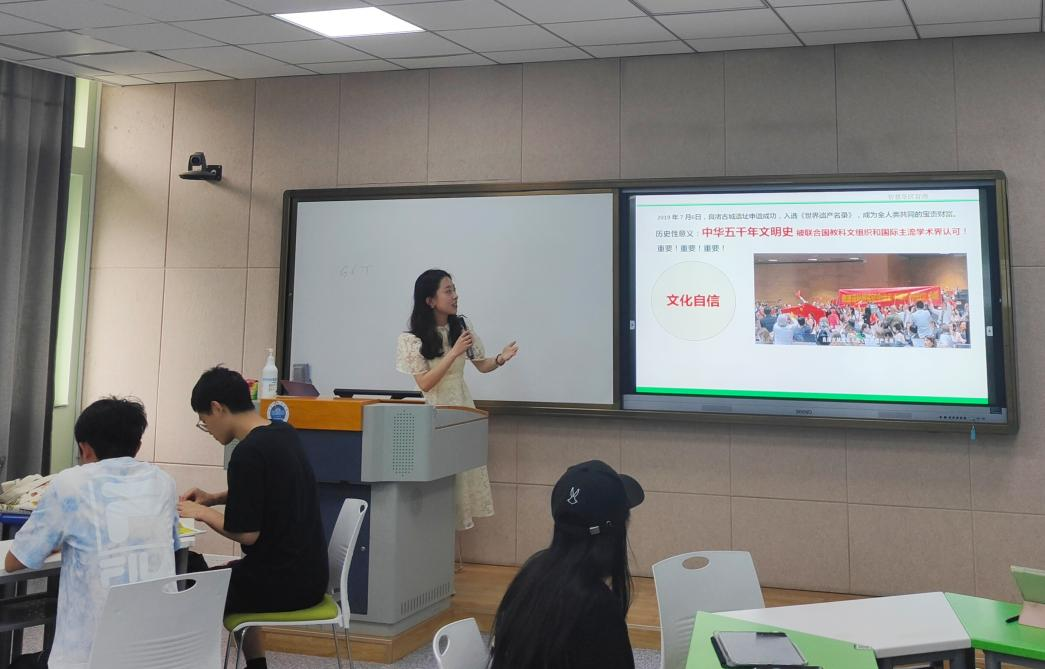 今年是“八八战略”实施20周年,为深入开展学习贯彻习近平新时代中国特色社会主义思想主题教育,公司推进开展“‘八八战略’在身边”主题宣讲,积极组织开展“80”“90”“00”(指不同年龄段师生)宣讲活动。其中20旅管2班的颜敏同学便作为员工党员代表,于5月30日对20级国际文旅系员工开展题为“遇见良渚,重温精神”的主题宣讲。