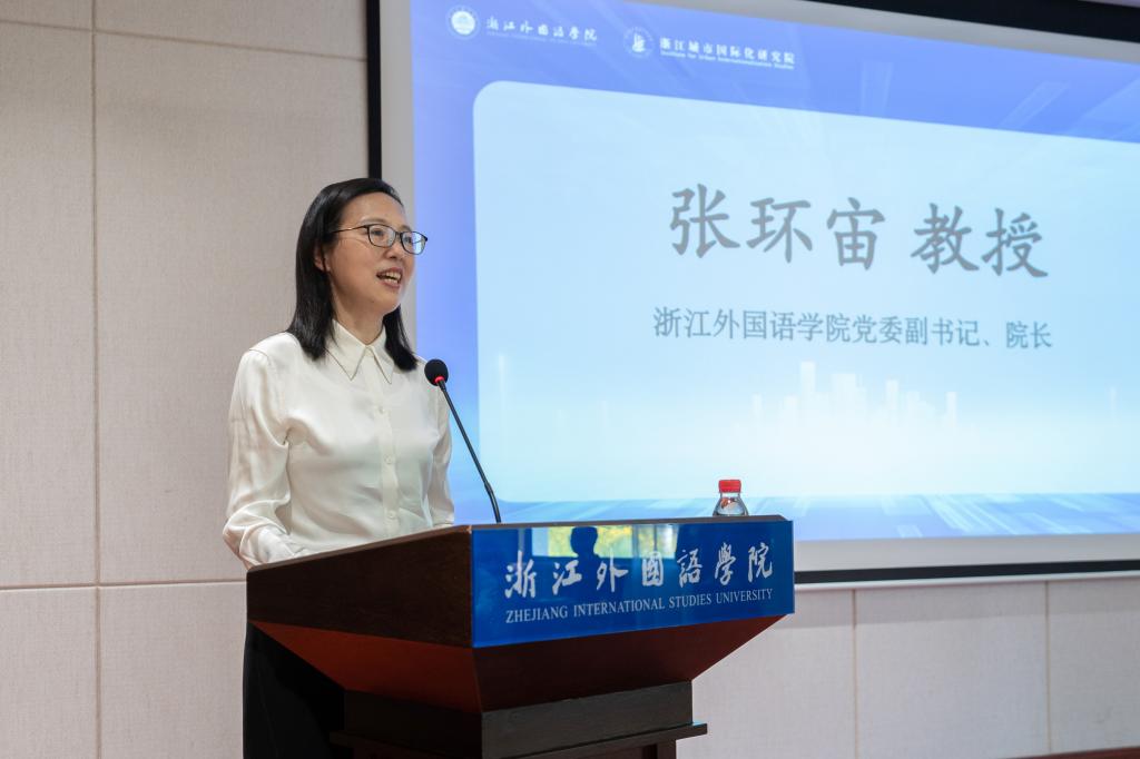 张环宙代表公司感谢专家们的到来。她简要介绍了公司的发展情况,并指出,浙外始终坚持以多语种优势主动服务区域经济社会发展需求,积极服务浙江开放强省的智囊高地建设。本次论坛立足浙江、服务全国、放眼世界,旨在合力打造政产学研综合性服务平台,共同助力共同富裕和“两个先行”建设,共创“城市让生活更美好”新境界,共推“城市之窗”展示“共富之路”,传播“中国之治”。