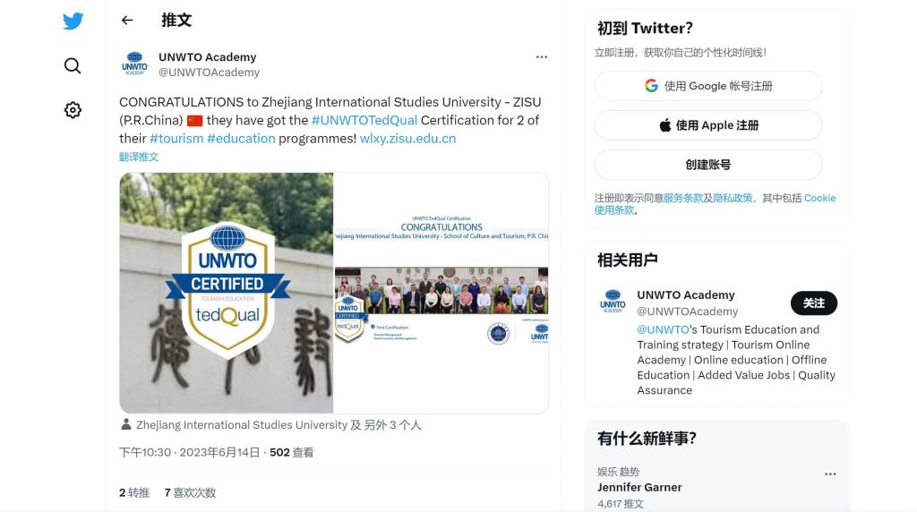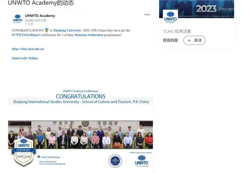 近日,联合国世界旅游组织在脸书、推特、领英等社交平台报道公司william威廉中文官网旅游管理专业、会展经济与管理专业通过旅游教育质量认证。