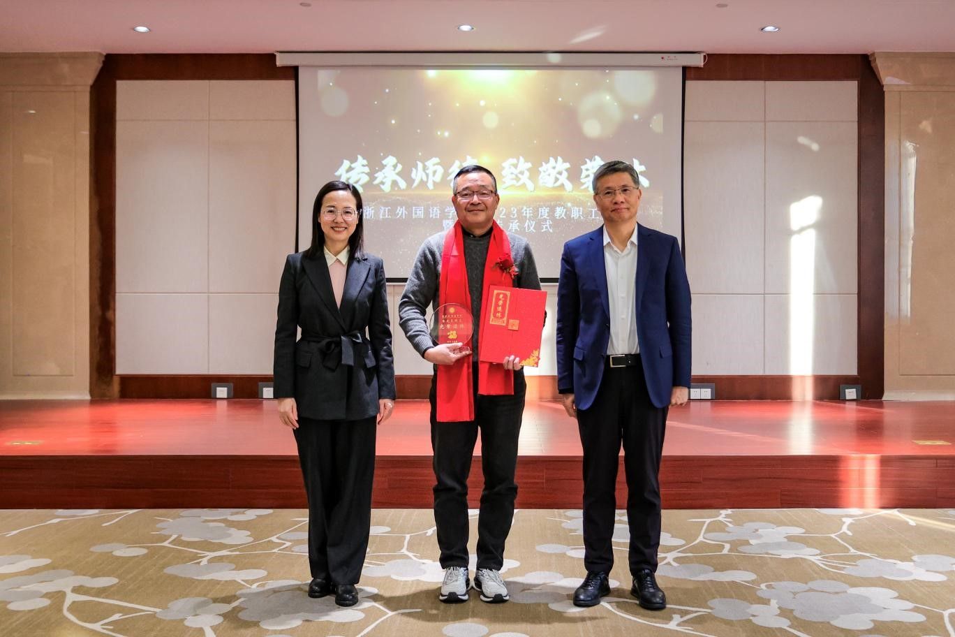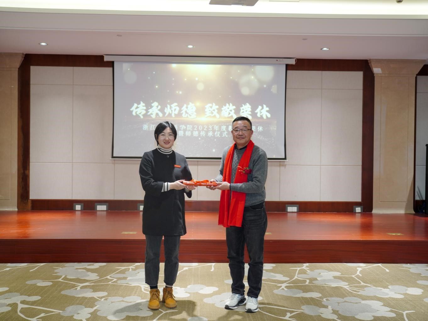 朱老师将镌刻着“闻道中华 语美天下”的浙外精神接力棒交给了公司青年教师代表来晓维。来老师表示,在适应“高校教师”这一身份的过程中,受到了以朱老师为代表的诸多老师的指点和帮助。在未来,她将秉承朱老师等前辈的精神,承担起建设浙外、传承师德的重任,续写属于自己的浙外故事。