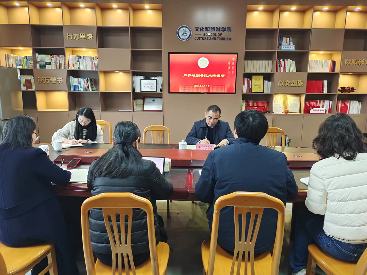 严书记和公司领导班子亲切交谈。他认真听取了班子的工作汇报,从大运河研究、乡村振兴、人才引育、党建统领、党风廉政等方面对公司发展提出了要求。他希望公司扎实开展各项工作,注重创新,高质量推动“十四五”指标落地,为公司建设国际知名以服务新型国际关系为特色的外语名校贡献文旅力量。