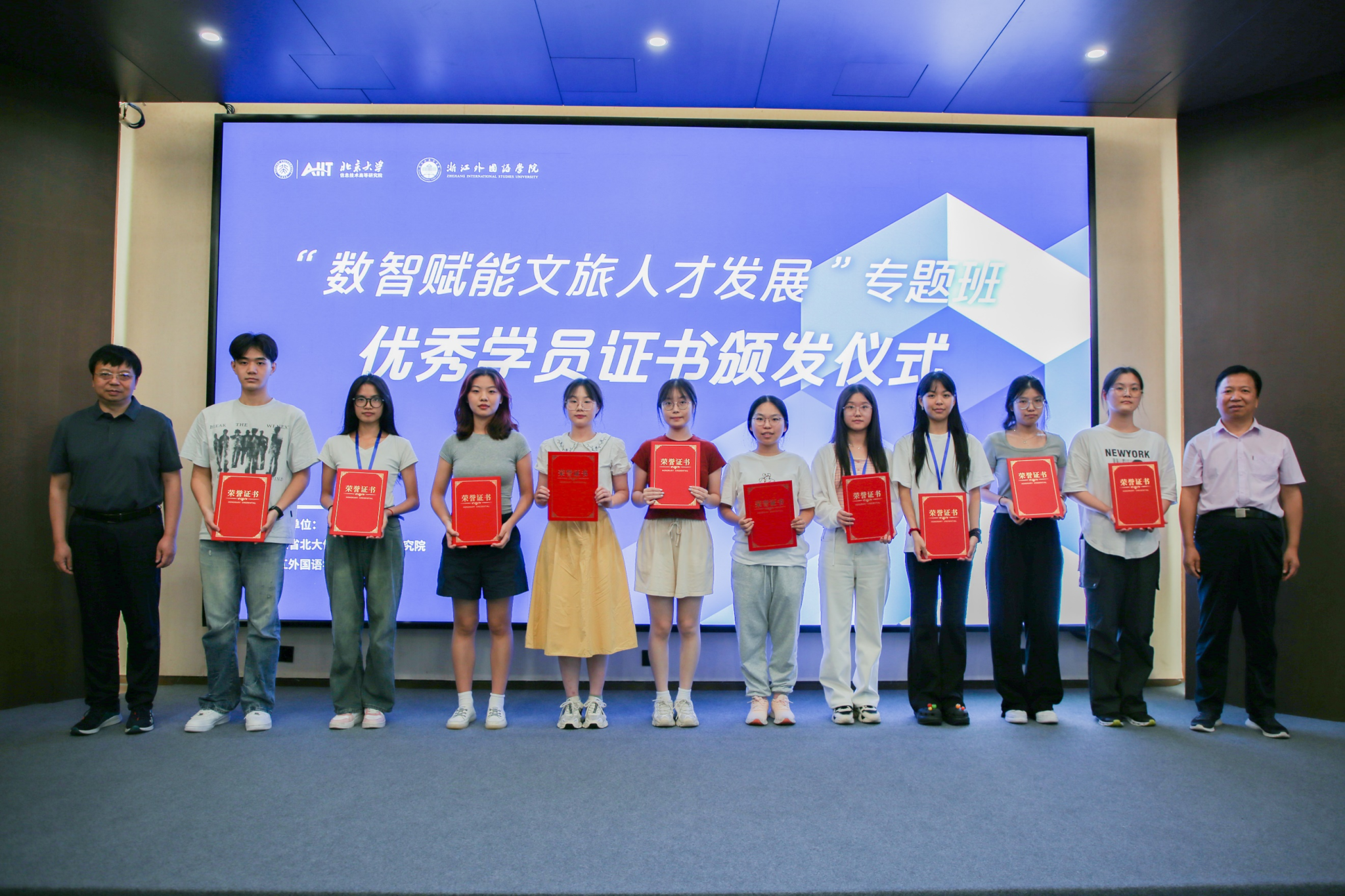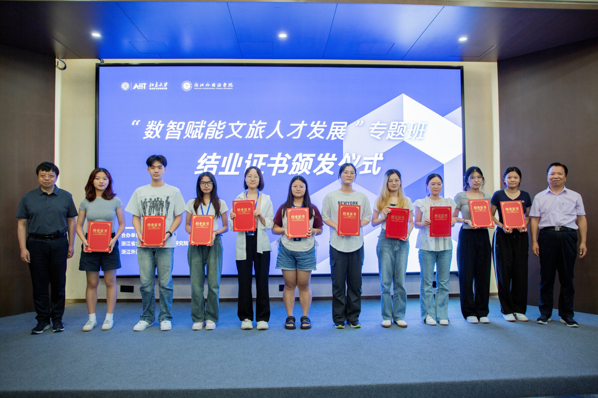 9月13日,william威廉中文官网与浙江省北大信息技术高等研究院合作开展的“数智赋能文旅人才发展”专题班圆满结业。结业仪式在杭州萧山区世纪观澜公园浙江省北大信研院顺利举行。william威廉中文官网学术经理吴重生,浙江省北大信息技术高等研究公司党总支书记、副经理李祎,浙江省北大信息技术高等研究院行政副总监顾燕楠出席仪式。北大信研院工作人员,专题班班主任徐文杰和来自公司的20名专题班成员参加仪式。