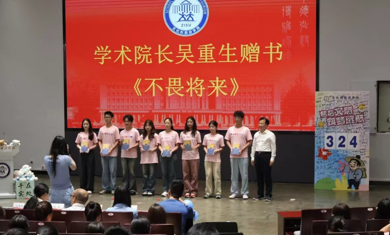 典礼中,各班班主任为新生代表赠送《习近平的七年知青岁月》。本次赠书活动是深入学习贯彻习近平新时代中国特色社会主义思想、落实“青年学子学青年习近平”学习教育工作并激励全体新生勤思善学、笃行致远的具体措施,目的是让习主席在青年时期经历的艰苦磨砺、奋斗成长的经历成为广大新生最深刻的人生启迪和精神养分。吴重生经理向新生代表赠送自己的著作《不畏将来》,望各位新生牢记初心,怀揣一以贯之的忠诚热爱、富民强国的抱负担当,不畏将来,学有所获。