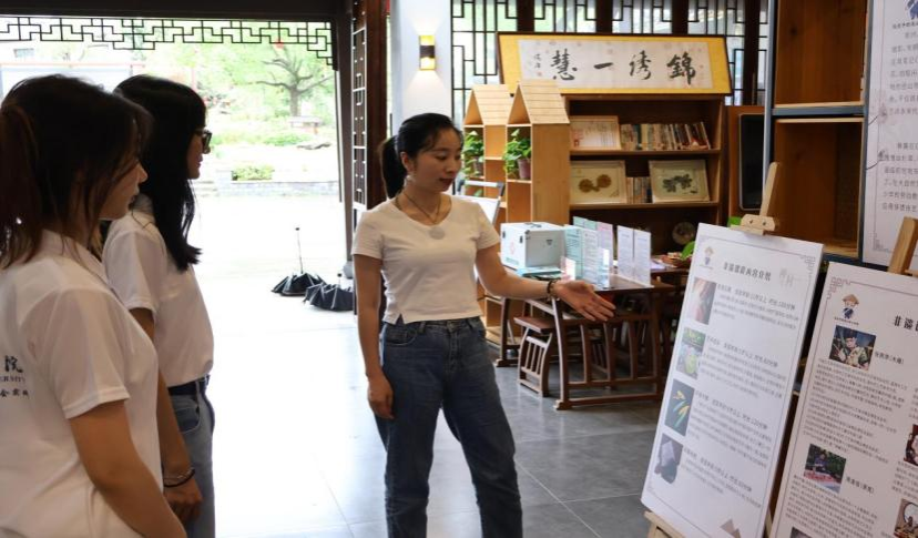 为了让更多人了解径山村的乡村风貌,实践队成员还精心设计了游客接待中心的全流程解说词,致力于为每位来访者提供详尽的导览与耐心的讲解。在村史馆的讲解中,实践队成员对径山村的环境保护和径山文化有了更深刻的认识。从径山茶的炒制到生态环境的维护,从非遗传承到特色文创,每一件展品都是径山村历史的见证。