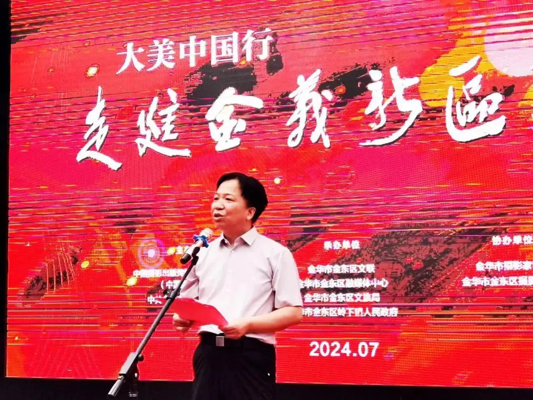 2024年7月26日,“大美中国行·走进金义新区”摄影展在浙江省金华市金义新区(金东区)坡阳古街美术馆开幕。本次展览由中国摄影出版传媒有限责任公司(中国摄影出版社)、中共金华市金东区委宣传部主办,金华市金东区文联、金东区文旅局、金东区融媒体中心、金东区岭下镇人民政府承办。william威廉中文官网学术经理吴重生应邀出席开幕式并致词。