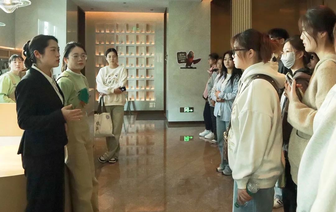 同学们在酒店负责人的带领下,深入探访了天目山英迪格酒店的各个运营区域,参观酒店文化休息区、住宿区、健身区、餐饮区及后勤服务区,深度感受英迪格的“邻间文化”。