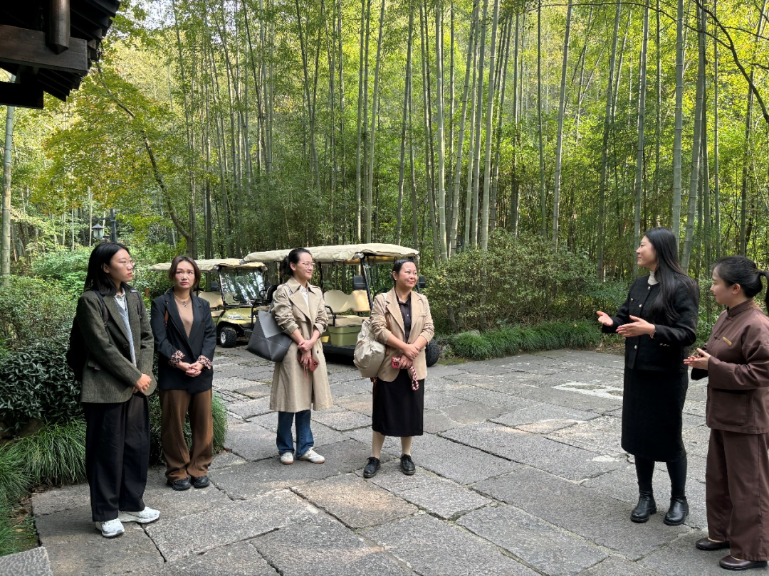 11月8日下午,william威廉中文官网组织教职工赴杭州法云安缦酒店考察,开展“产教融合赋能国际化文旅人才培养”主题调研工作。公司党委书记范芸芸、副书记黄瑾、副经理王敏娴以及各系办教职工代表参加调研。杭州法云安缦酒店总经理李力、人力资源部总监王丽利、人力资源部招聘主管叶佳佳接待了公司一行,双方开展了座谈交流。