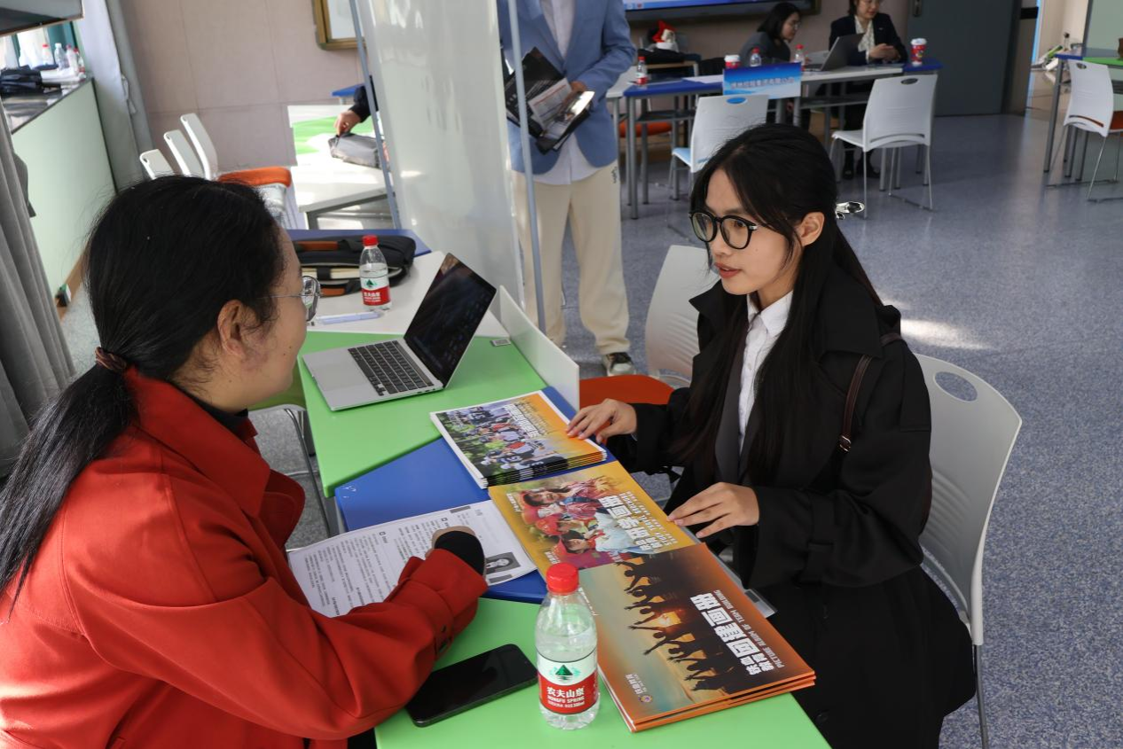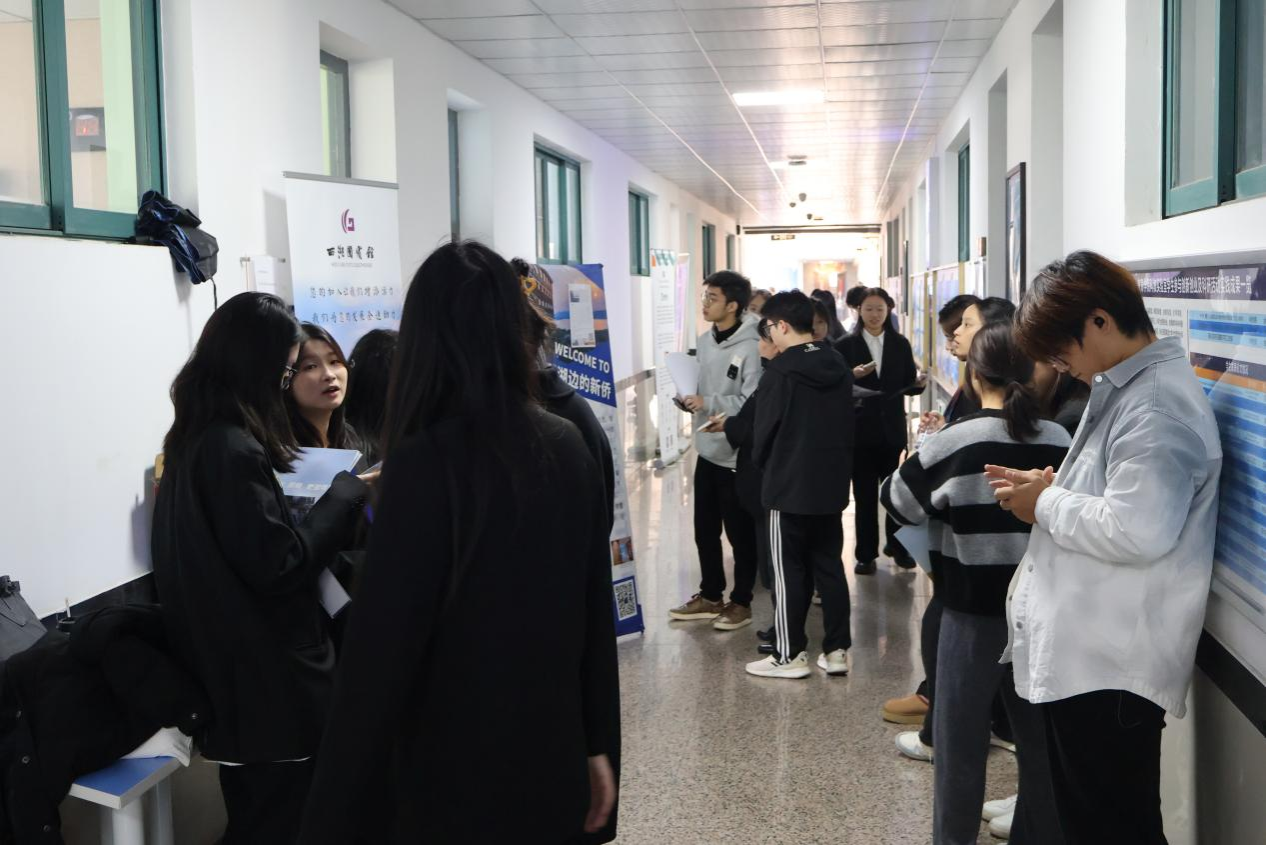 招聘会上,公司党委书记范芸芸、党委副书记黄瑾来到现场,在关注同学们求职情况的同时,还与企业负责人就人才培养、岗位需求、晋升空间等内容展开交流。