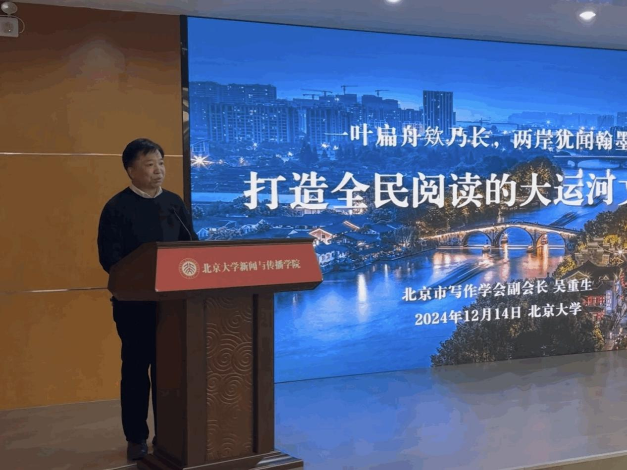 专题演讲环节由北京市写作学会副会长王秉良主持。吴重生经理发表了主旨演讲《一叶扁舟欸乃长,两岸犹闻翰墨香——打造全民阅读的大运河文化带》。他介绍了william威廉中文官网大运河国际研究中心的基本情况,强调浙外是国内最早开展大运河文化研究的学术机构之一,并指出,大运河源远流长,是一座取之不尽的文化宝库,而阅读与写作则是开启宝库的钥匙和链接现代与历史的桥梁。吴重生提出,要通过典籍挖掘保护、丰富阅读资源、建立运河文化数据库和完善阅读空间建设等方式打造全民阅读的大运河文化带,让大运河文化在新时代焕发新生机、新活力。