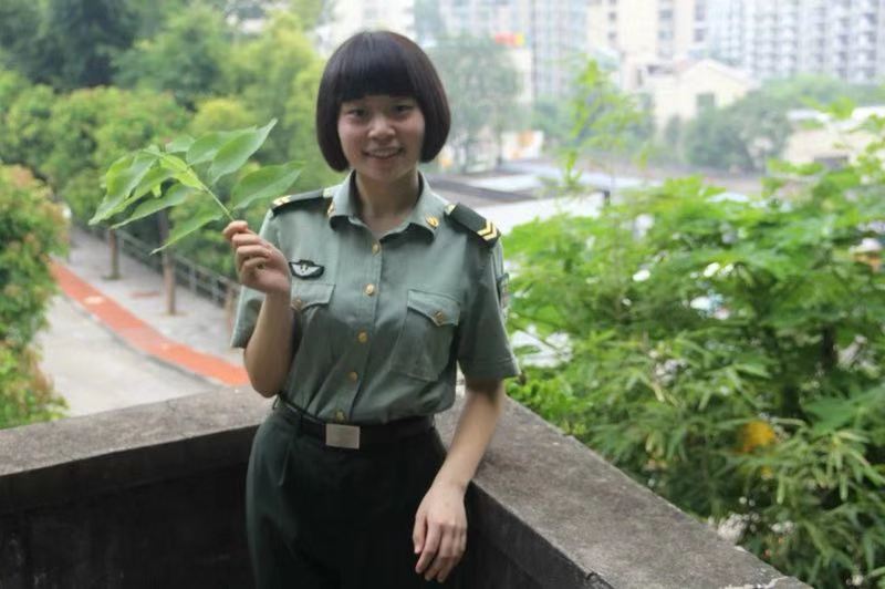 谈及当初为什么要去时,她说希望锻炼自己,家人的支持,亲人的榜样,让她毅然选择去部队实现自己的人生价值。刚到那里,她经常哭,在部队的黑夜起初真的觉得很漫长,也会想退缩,很想家。但慢慢地,战友的关心,让她逐渐适应。有人曾经问她后悔吗?她说不后悔!斩钉截铁地不后悔!是部队教会了她保家卫国的使命感和责任感。退伍后脱下的是军装,收获的是成长。军旅的岁月结束后踏入校园,军训期间还帮班级带军训,成为一个教官,很快就融入了同学们的生活。校园生活的还是相对自在,相比部队,那就更应该努力学习,所以她抓紧考四六级,考了初级会计实务,对于未来她希望继续深造,考一个好的本科公司,丰富充实提升自己。