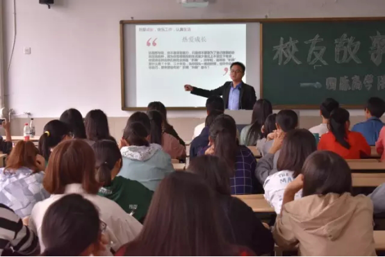 10月27日下午,员工故事分享会在望院D-414顺利举行。公司2011届国贸专业毕业生、商公司考试服务中心、自律委员会创始人徐海林受邀出席。为在场的学弟学妹们带来了一场幽默且富有哲理的视听盛宴。