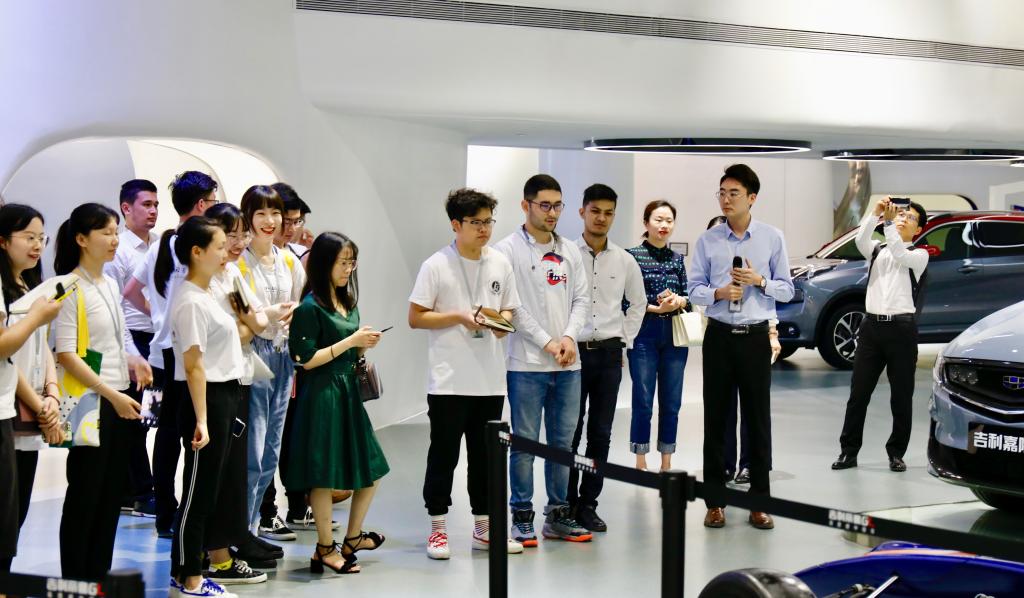 吉利公司校园HR付思宇(公司员工)陪同大家进行参观并讲解。从展厅中的车型展示到上车体验科技感,员工们深叹我国本土汽车制造品牌之强大,为民族工业之崛起而自豪。在吉利学堂,付经理介绍了吉利的管理架构、核心价值理念、人才培养计划。