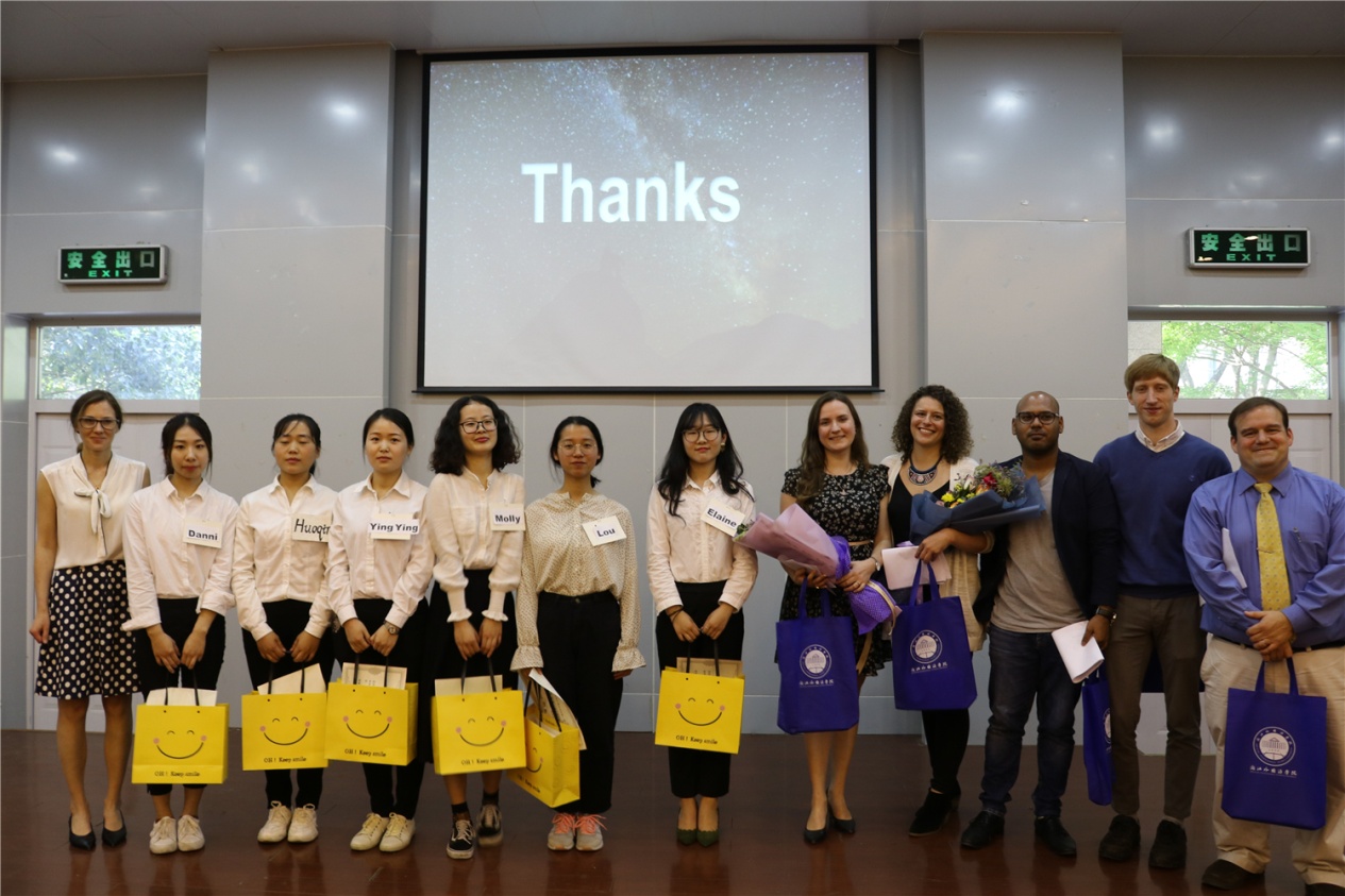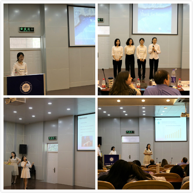 本次比赛主题为:“Partnerships in intercultural environment: Ways to attract foreign investors 跨文化环境下的伙伴关系:吸引外国投资者的途径”,共分为小组展示、小组辩论、评委讨论、颁奖典礼四个环节。在前两个环节中,五个小组发挥了团队精神,展示了小组优势,多层面、多角度分析了华为、饿了么等公司吸引外国用户的方式。精彩的演说和激烈的辩论不仅得到了现场观众的赞扬,也得到了评委们的一致认可及精彩点评。最终,16旅管2班张婷同学获得了“最佳演讲者”奖项,其所在小组获得了“最佳项目”奖项。