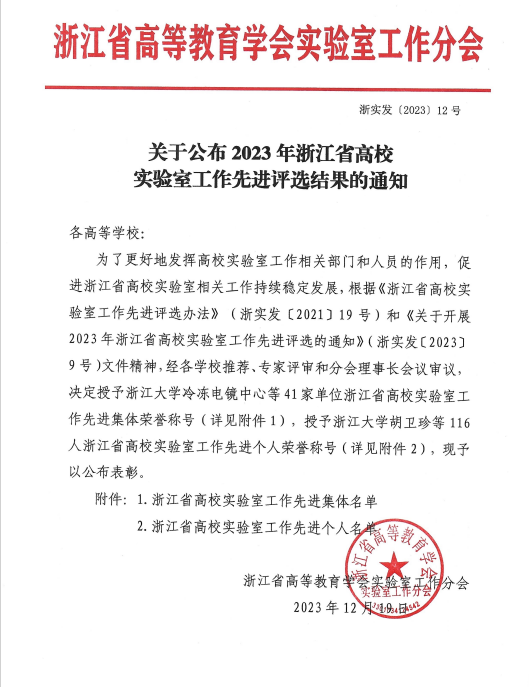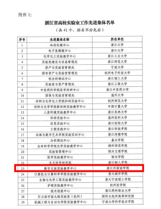 12月19日,浙江省高等教育学会实验室工作分会发布了《关于公布2023年浙江高校实验室工作先进评选结果的通知》。公司数字文旅实验中心荣幸获评为浙江省高校实验室工作先进集体。这份荣誉既是对公司工作的认可,也是公司在教学科研领域的一项喜人成果。