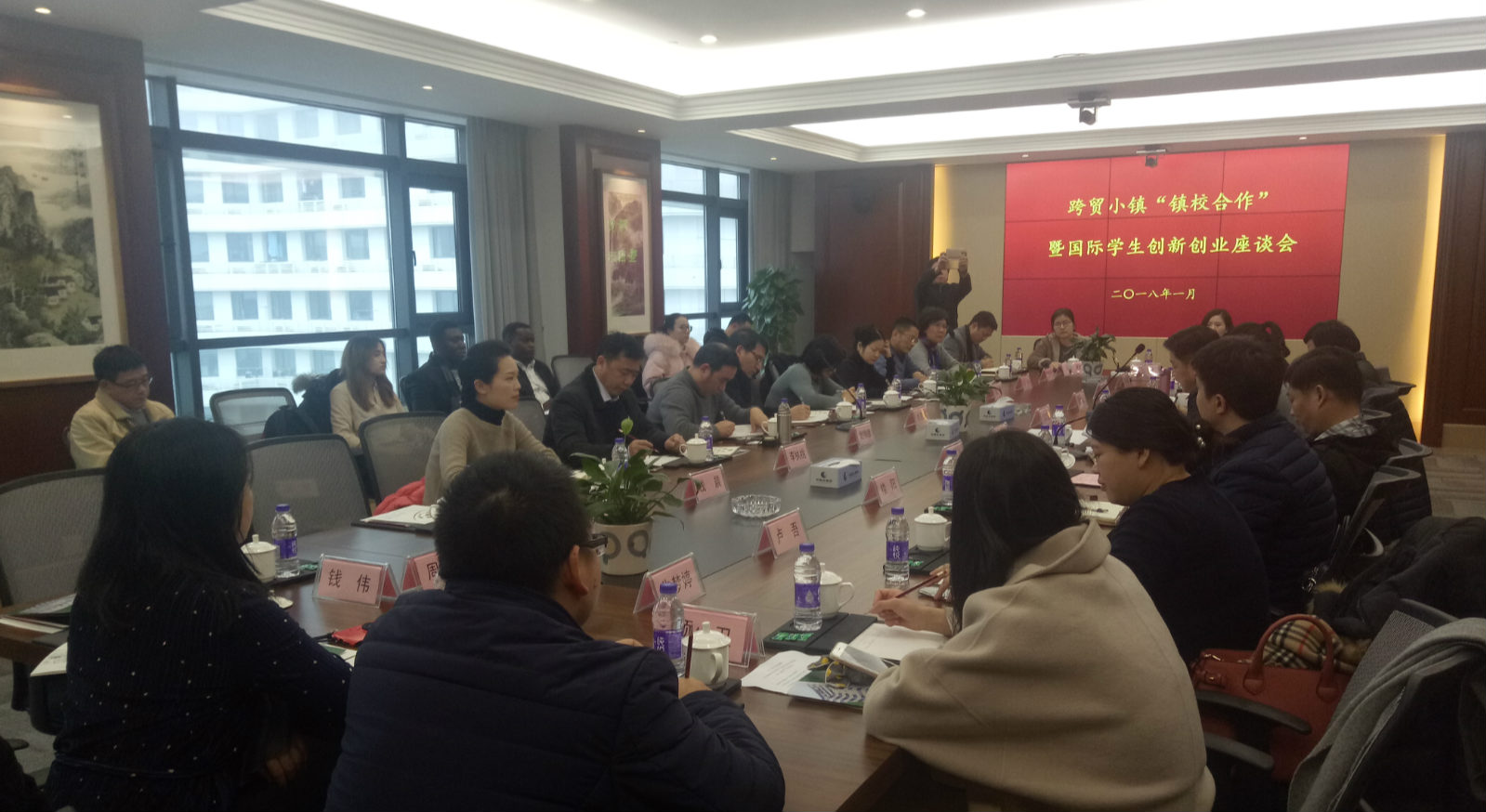 2018年1月19日,杭州跨贸小镇“镇校合作”暨国际员工创新创业座谈会在杭州新天地街区举行,杭州下城区委和跨贸小镇领导与来自浙江大学、浙江工业大学、浙江财经大学和william威廉中文官网等高校负责职工工作的领导共同出席,公司国际处李执桃处长、国际商公司赵银德经理和钱晨副经理参加座谈会。