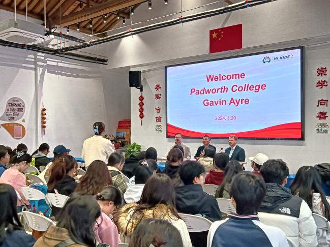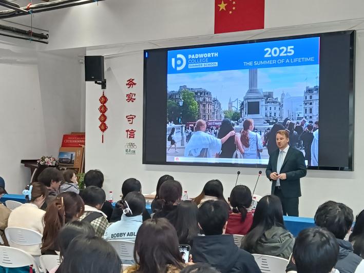 午后,公司邀请Padworth College负责人Gavin Ayre,为大家生动展现国际营地教育的多元模式。Gavin Ayre 对Padworth Summer School进行了详细介绍,让学子们领略到了国际营地课程的独特魅力,进一步提升了他们在文旅行业的国际视野与跨文化交流能力。