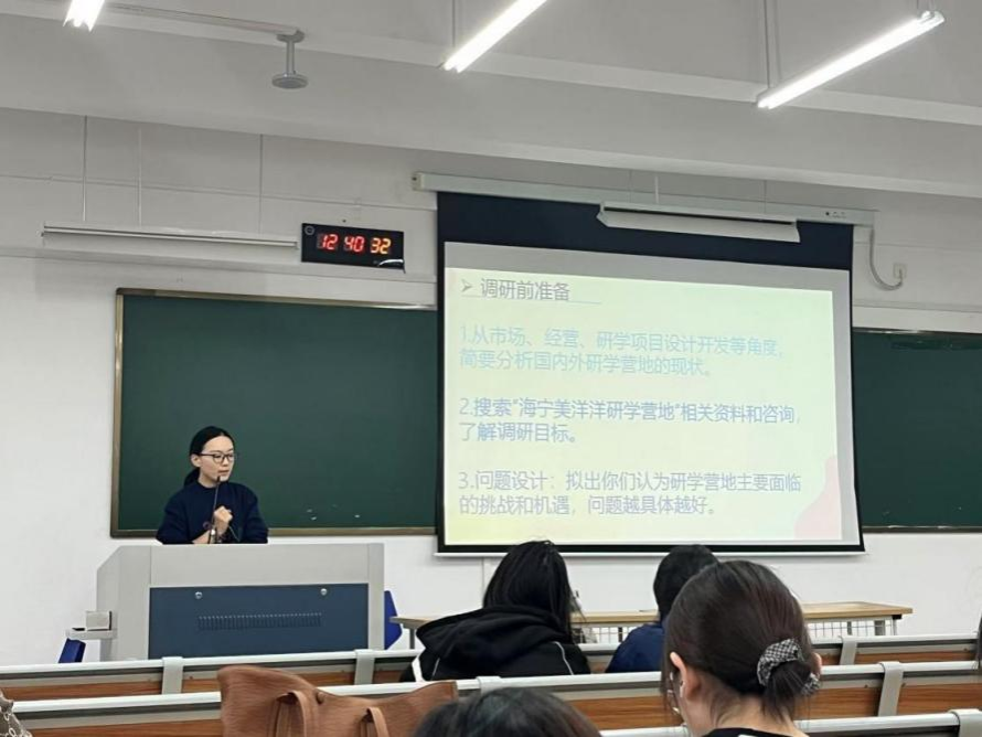 随后,路璐老师为即将启程的海宁美洋洋研学营地之行勾勒出清晰的轮廓,从调研目的到方法,从团队协作到安全须知,为同学们的实践之旅提供指南。