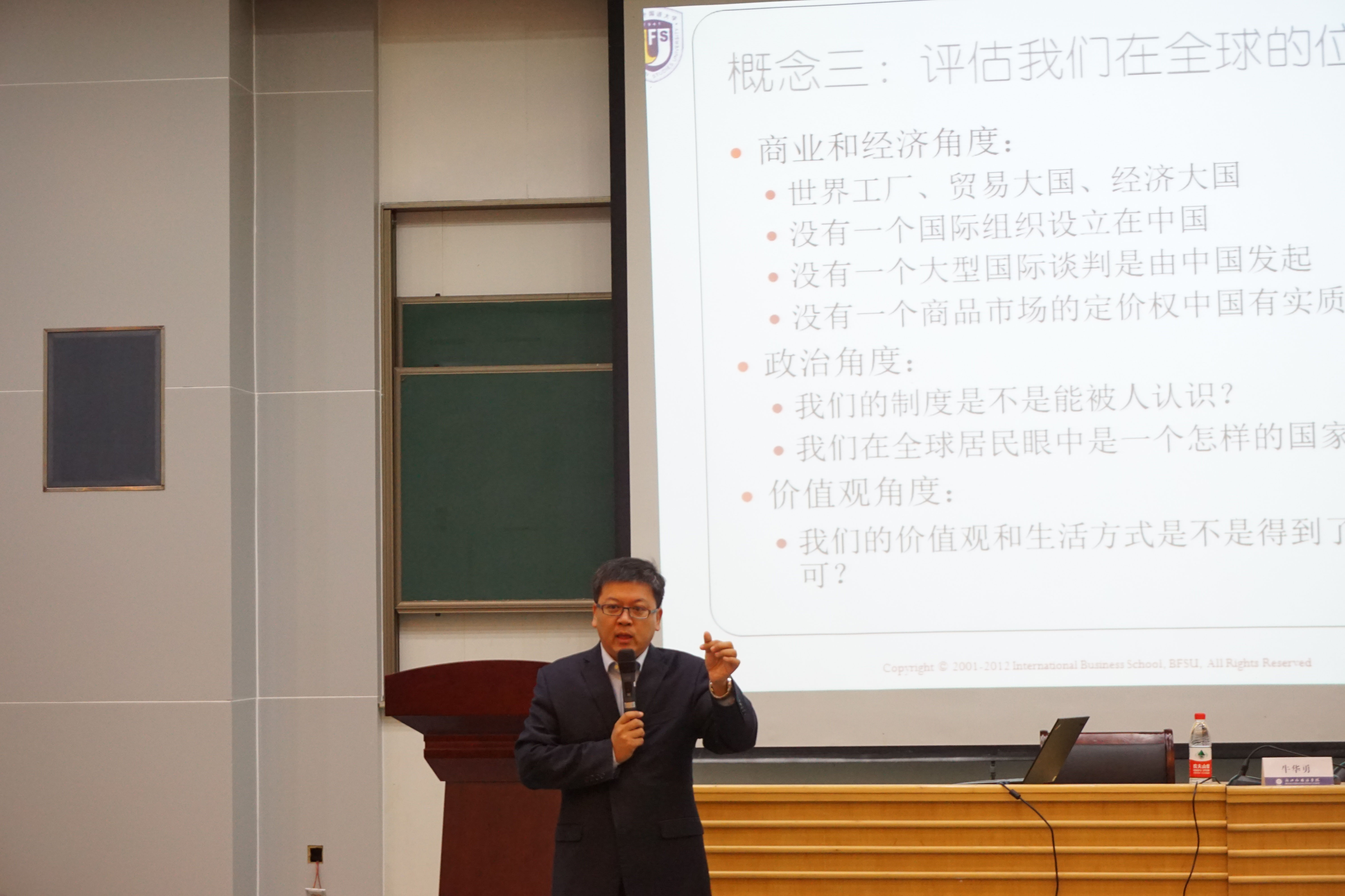 12月7日下午4:30,北京外国语大学国际商公司经理、南方研究院执行经理牛华勇教授在望院C-116以“中国经济全球化与全球治理变革”为主题为公司学子带来精彩讲座。公司党总支副书记周明宝主持本次讲座,15、16级国贸、国商等专业员工和相关老师参加此次讲座。