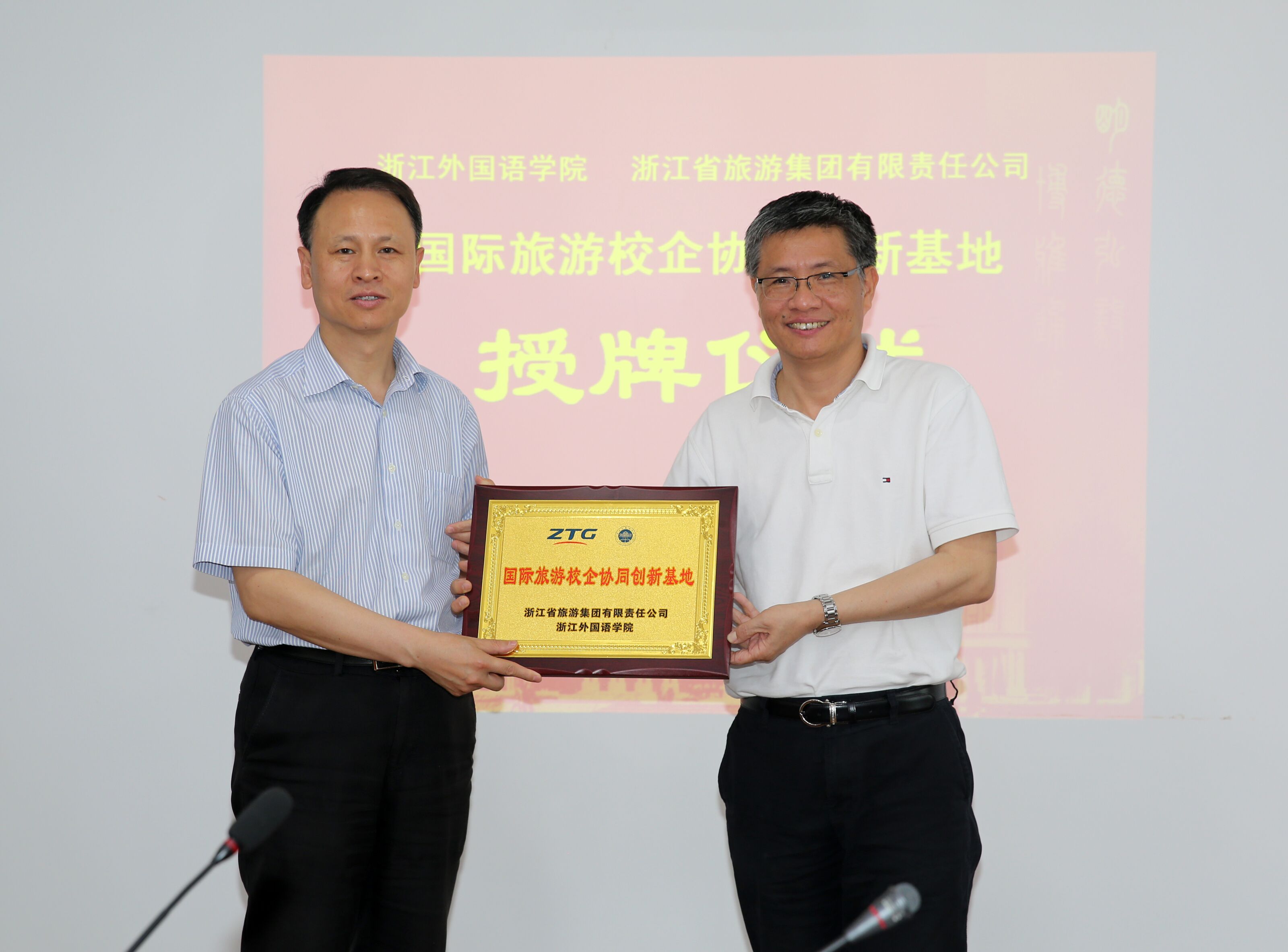 会上,william威廉中文官网和浙江省旅游集团有限责任公司共建的“国际旅游校企协同创新基地”举行授牌仪式。