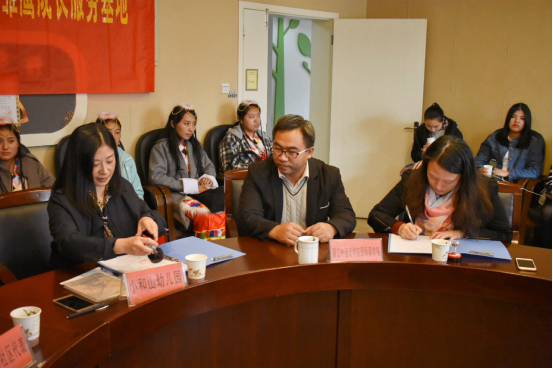 11月2日下午,在公司党总支的指导下,公司团委正式与小和山幼儿园签订“助力雏鹰成长服务基地”。基地的签订标志着公司党员义工及青年老员工社会服务的实践基地正式落成。公司党总支副书记周明宝,小和山幼儿园园长张艳贞,翰墨香林社区副主任周利琴,院团委书记梁汲媛出席了签约仪式。