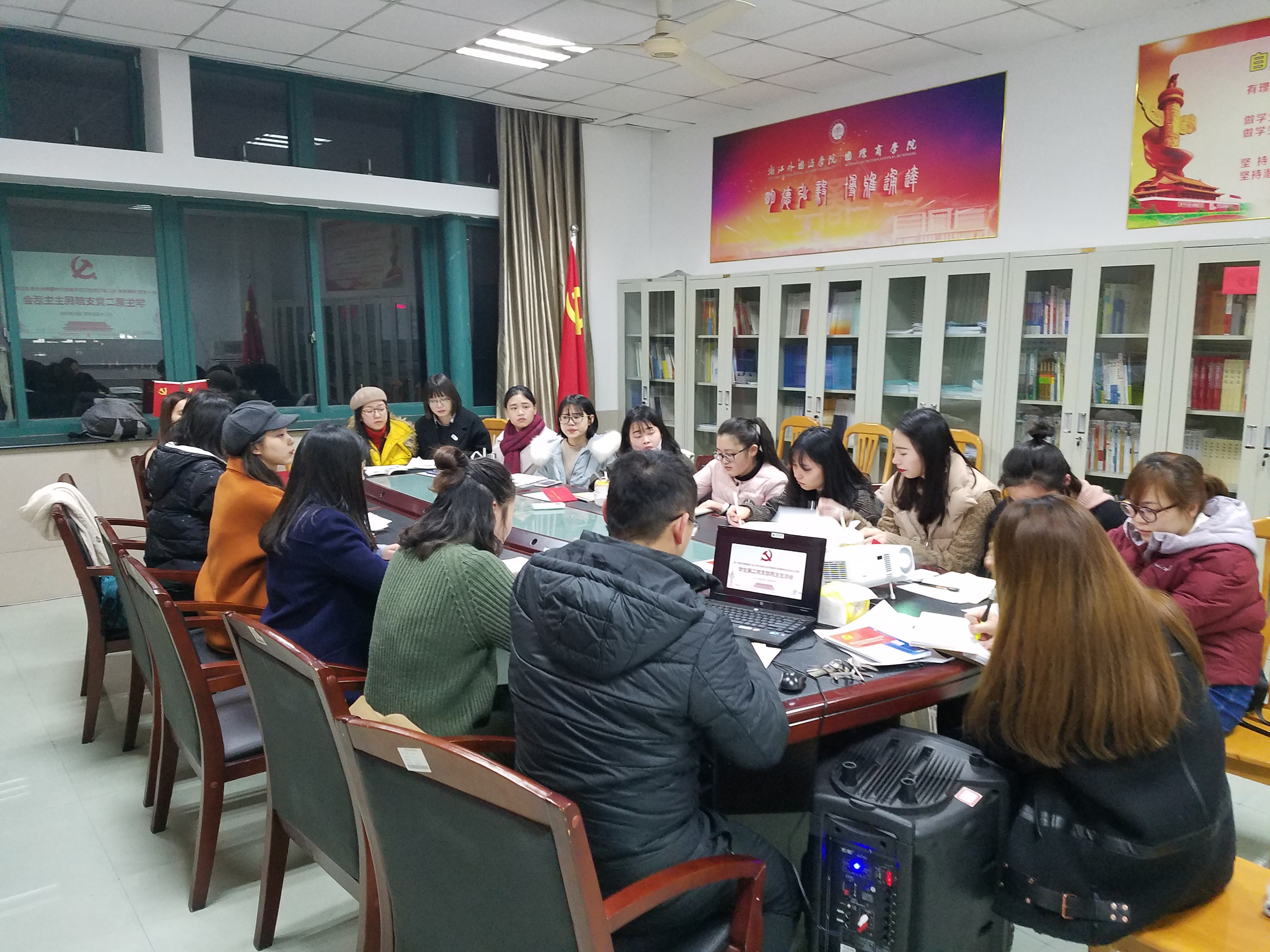 之后,全体党员结合党章和党的十九大精神,深刻总结自己在这一年来的学习、工作和生活中的优点和不足,并提出了相应的改进措施。支部党员张可可同志对照党的要求谈到,理论学习不够,志愿者工作参与不够多。杨张梦莹同志提到自己容易产生惰性,近期的严寒影响了她的作息习惯;毛晨艳同志提到自己缺少深入钻研的精神,容易在学习文化知识的过程中浅尝辄止;何阳扬老师提到了尽管平时管理班级成员基数过大,但仍应尽量去接触更多的员工,了解员工的各项情况等等。最后周长喜总结了自己理论学习不够,工作的方式方法不够丰富,对制度执行的监督不够,导致支部党员对自己更加松懈。针对支部的今年的工作,周长喜强调支部在学习教育过程中存在形式主义,另外,有些党员员工的榜样引领和示范性不够等突出问题,要求毕业班党员在就业过程中发挥榜样作用,非毕业班员工加强对支部各团支部的联系,主动到青年员工中宣传党的理论、政策和方针,加强对青年员工引领。