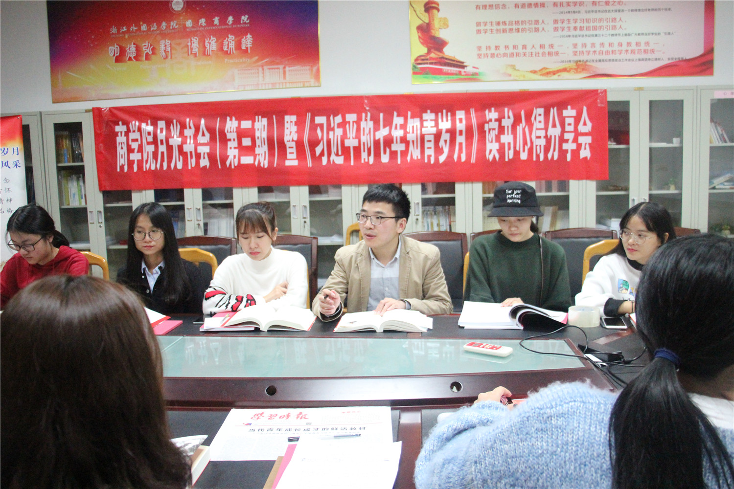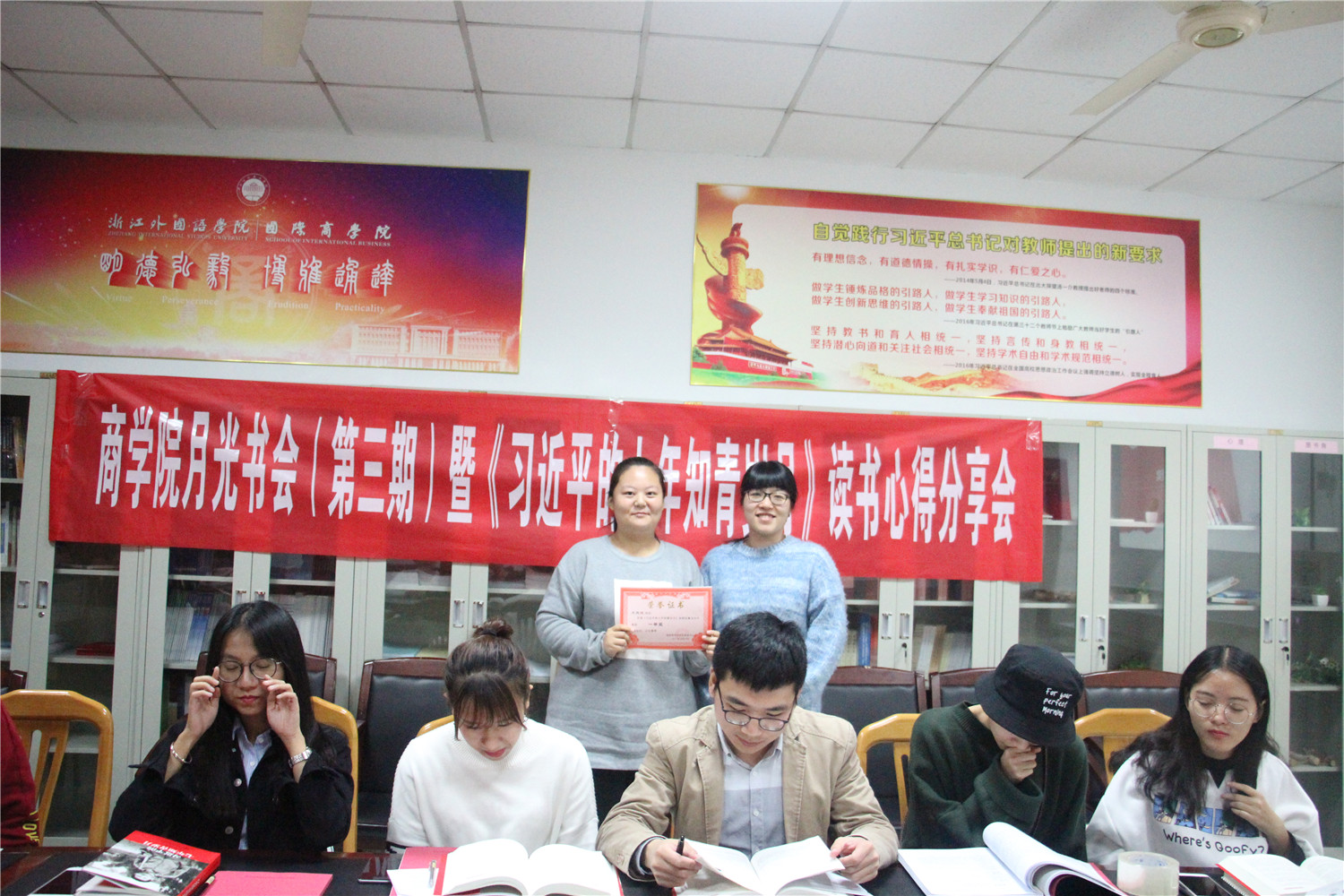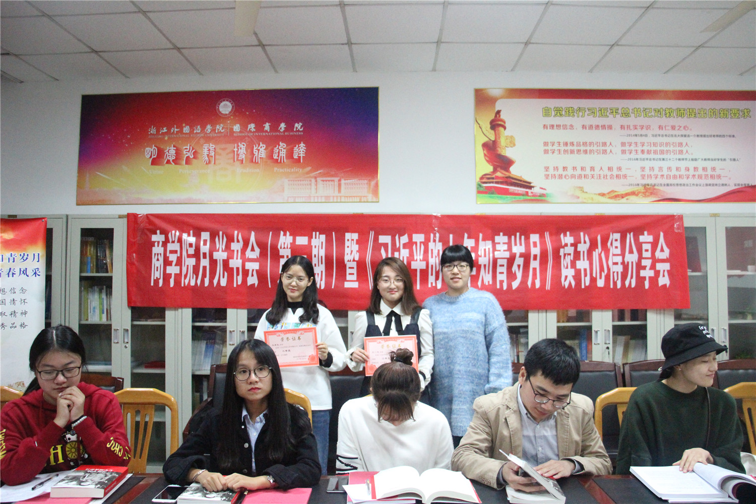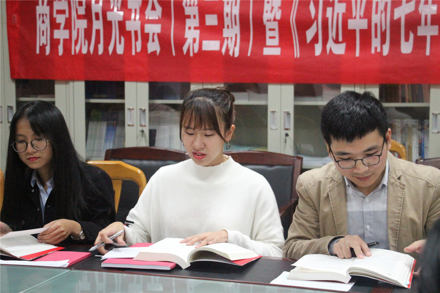 10月29日晚,商公司月光书会(第三期)暨《习近平的七年知青岁月》读书心得分享会于望院D428教室举行。员工新闻中心指导老师王化明、员工新闻中心主任陈雪珂及日前公司举办的音频征集比赛获奖同学出席会议,本次会议由院员工新闻中心办公室部长刘玉主持,在座同学谈心得、说体会、话担当,总结学习感悟。