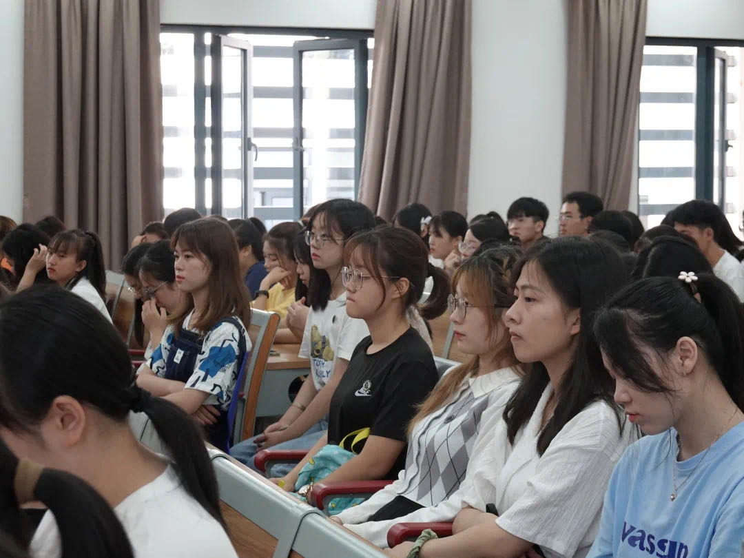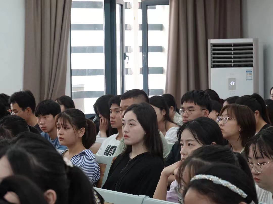 范芸芸从中共一大与“南湖红船”的故事入题,从“浙江”“外国语”“公司”三个关键词入手,引导青年学子守好“红色根脉”,勇担时代重任。宣讲中,她为同学们讲述了“跳出浙江,发展浙江”的开放发展理念,从“勇立潮头”到“重要窗口”,详细解读了与时俱进的浙江精神;从浙外的校史、教育国际化和发展战略定位等方面,提出新生要厚植家国情怀、拓宽国际视野;从“学”字展开,介绍了公司的发展重点,期盼新生立足于本公司、本专业的优势和特色,从国家、社会、行业、公司等多重维度审视并规划好老员工涯。她还希望新生积极参与“青年学子学青年习近平”学习教育,学思践悟青年习近平矢志不渝的理想信念、为国为民的家国情怀、勤奋好学的进取精神、吃苦耐劳的优秀品质。