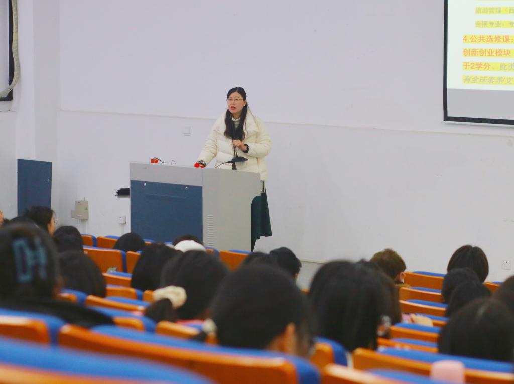 贾老师从大四的主要教学安排、毕业审核和学位授予、考研或就业如何选择等三个方面为大家进行了答疑解惑。她在强调专业见习、毕业实习、修满学分等重要性的同时,还为大家分析了考研的长远态势以及多样选择,详细介绍了应该如何院校专业和备考的重点。