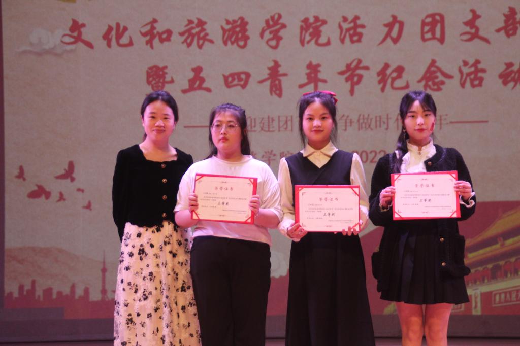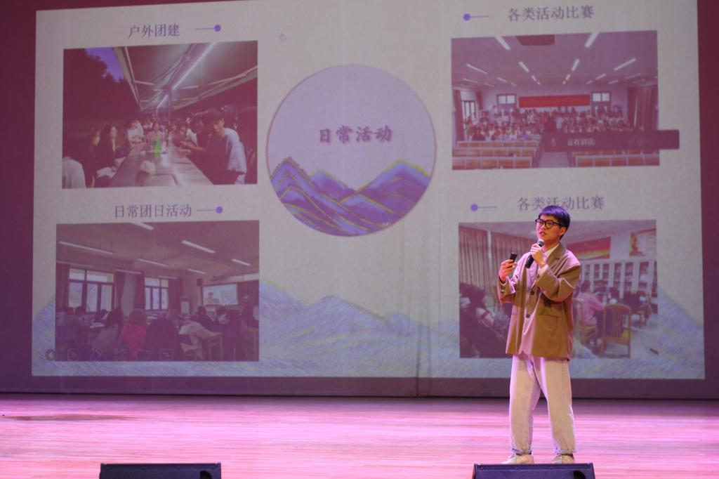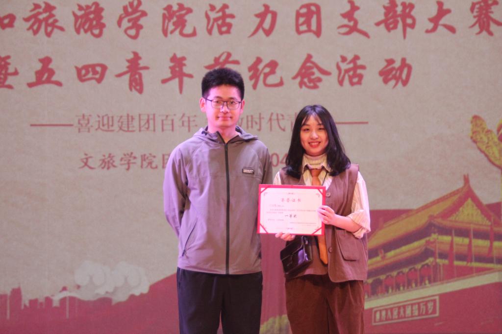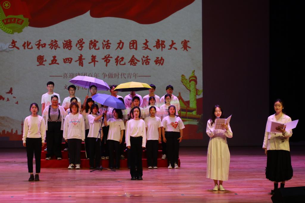 大赛共有10个班级团支部参与评选,比赛分为风采展示和才艺展示两部分。风采展示环节,各团支部采取ppt汇报与视频展示结合的方式,分别从班级建设、思想建设、活动开展情况、班级荣誉等不同方面介绍团支部情况。各支部的展示各具特色,生动再现了支部在组织青年、团结青年、凝聚青年等方面做的工作和努力。他们特有的魅力和风采,更体现了文旅青年朝气蓬勃昂扬向上的精神面貌。