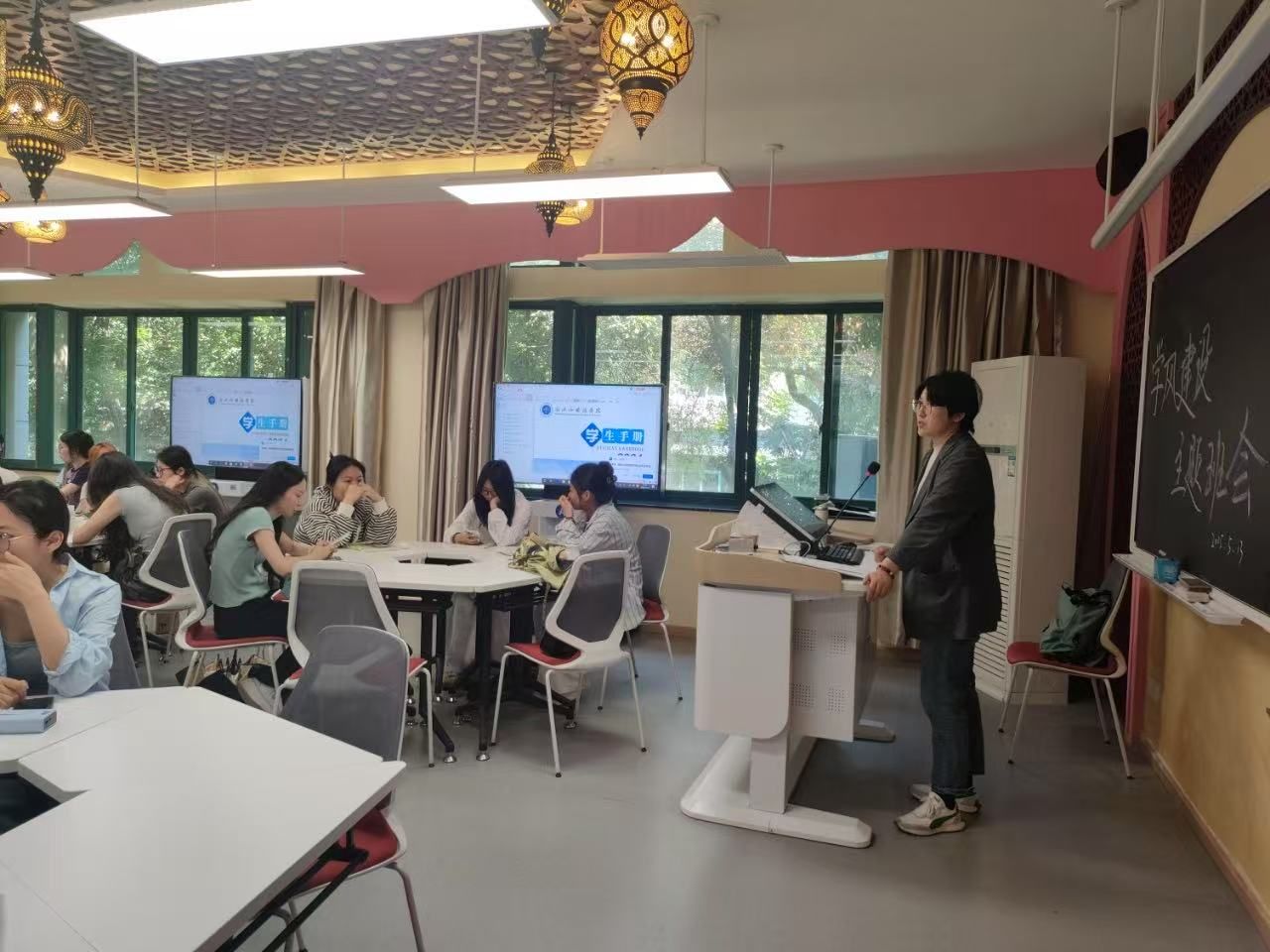 各班主题班会的议程为“四个一”重温一次《员工手册》关于员工行为规范、学习纪律处分规定相关内容,形成一份班级学风公约,签订一份学风建设承诺书,组织一次主题研讨。班主任充分发挥主导作用,系统分析当前班级在学风建设工作中取得的成效与存在的不足,深入阐释学风建设对员工成长成才、班级集体荣誉塑造以及公司整体教育水平提升的重要意义,引导全体员工提高思想认识,增强参与学风建设的自觉性和主动性。