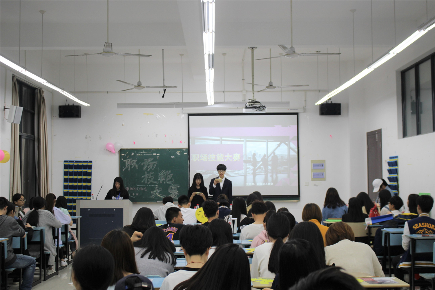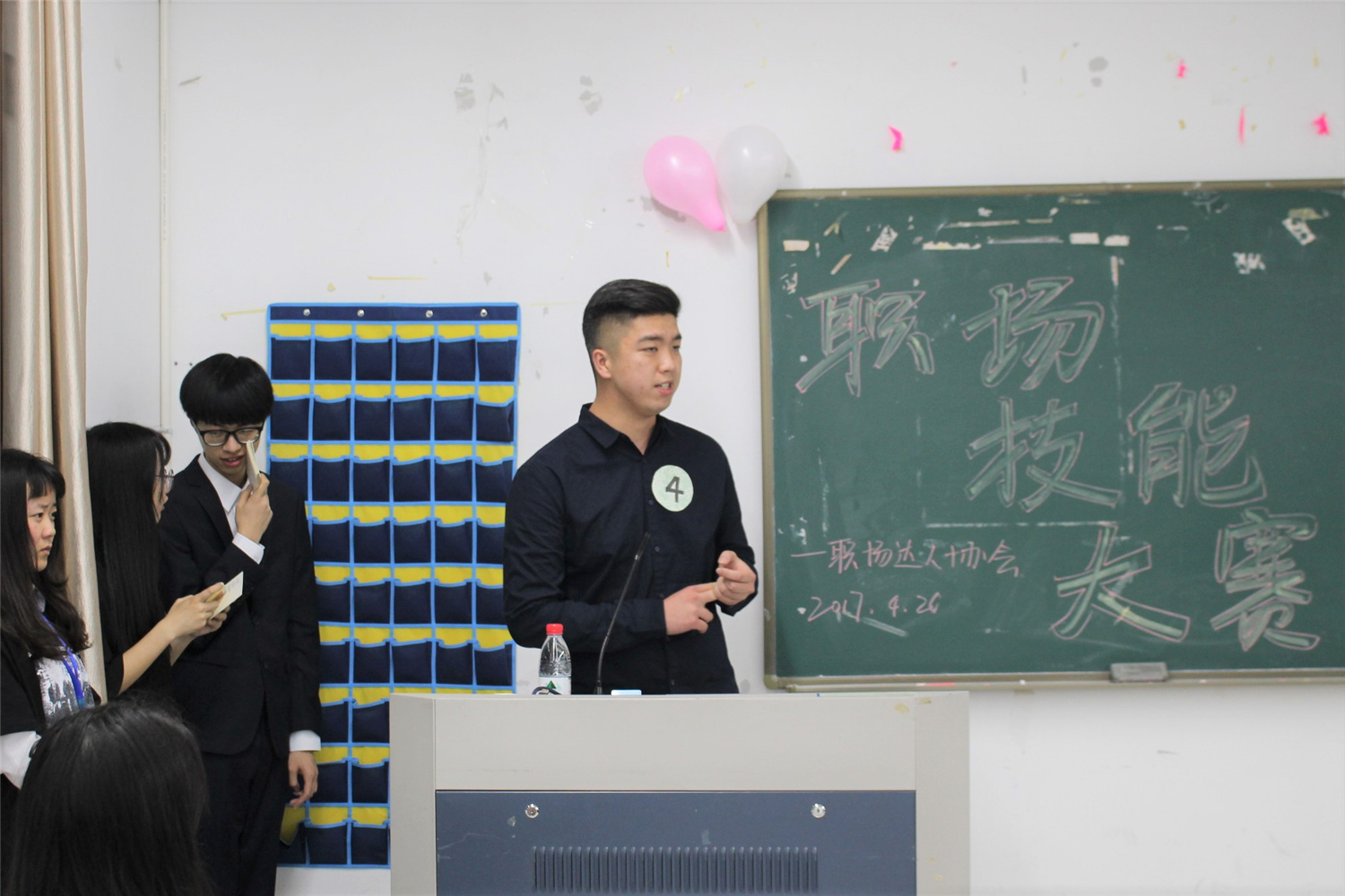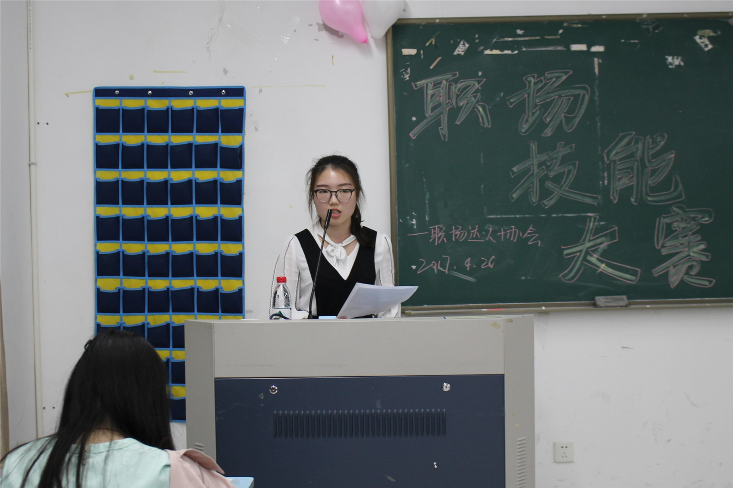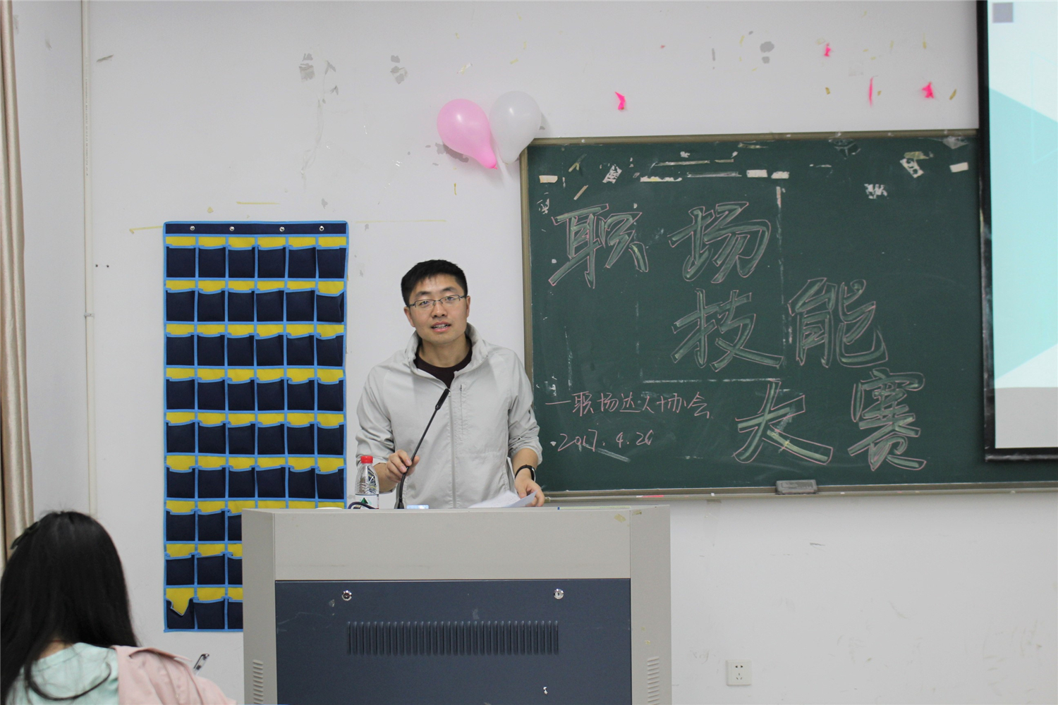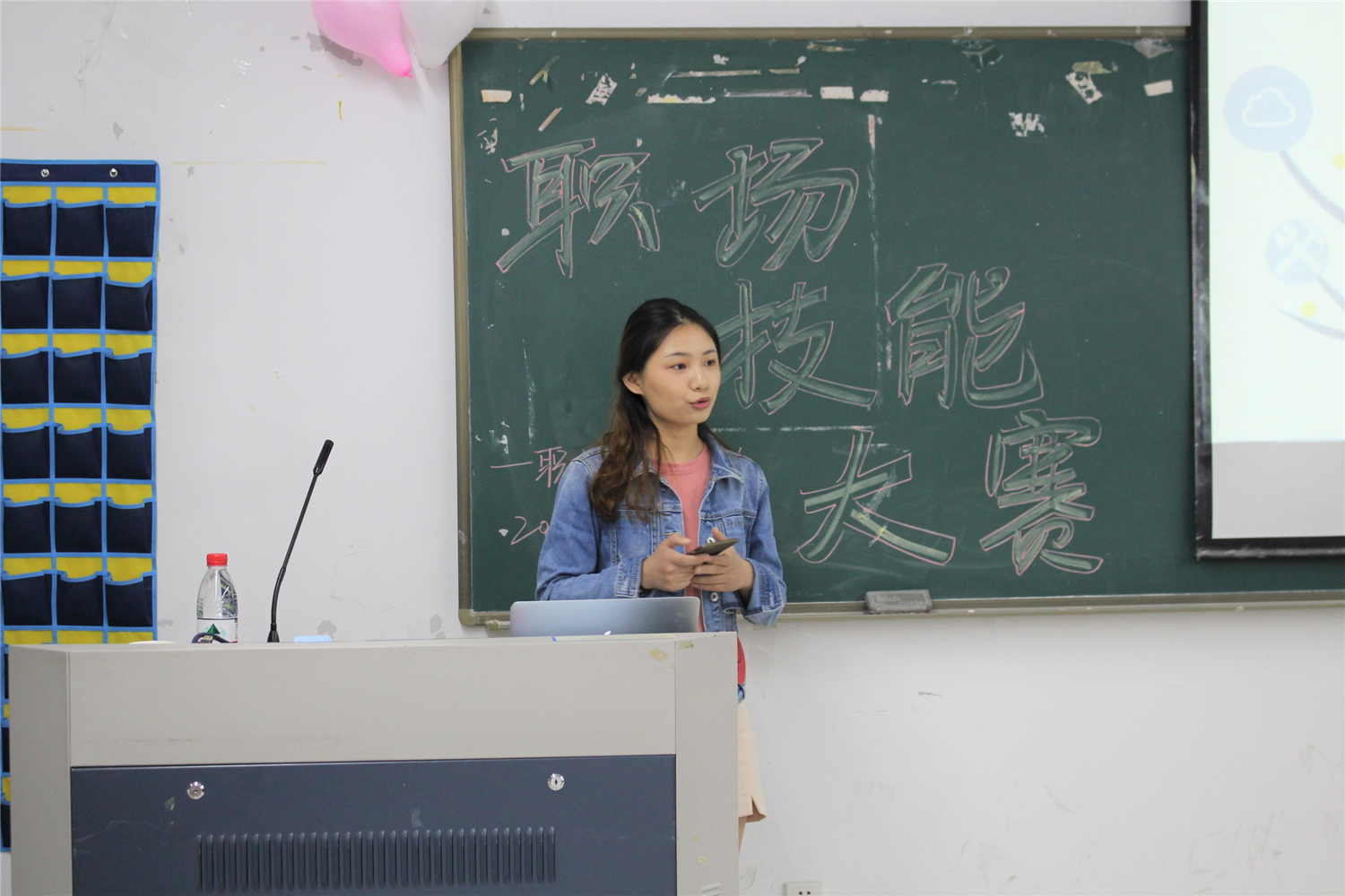 4月20日晚6点半,由公司员工会职场达人协会主办的职场技能大赛在品院A209顺利举行,公司辅导员赵冬冬,礼仪社社长张明圆,员工会主席彭于凡,副主席杨雅婷以及员工国际文化交流中心负责人郭冰霞应邀到场,同时来自高顿财经的特邀嘉宾王慧芳老师也出席了本次大赛。