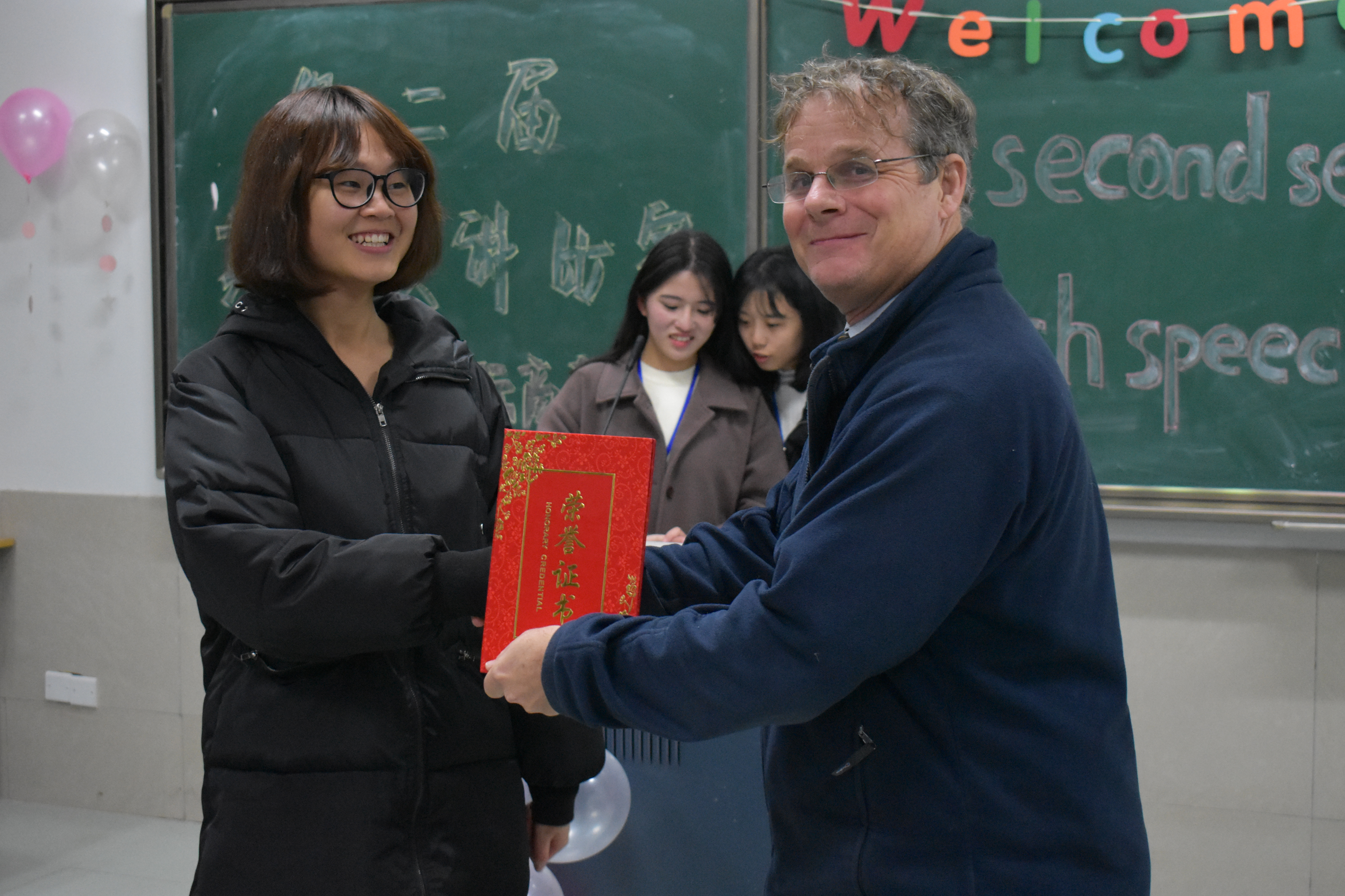 赛后,外教William Joseph Arnold,赵冬冬老师和汪轶寅老师分别对比赛进行了点评,称赞了选手们的勇气和实力,并且希望今后能有更多机会锻炼选手们演讲的能力。在宣布最终获奖选手后,评委们与获奖的同学合影留恋,本次演讲比赛圆满结束。