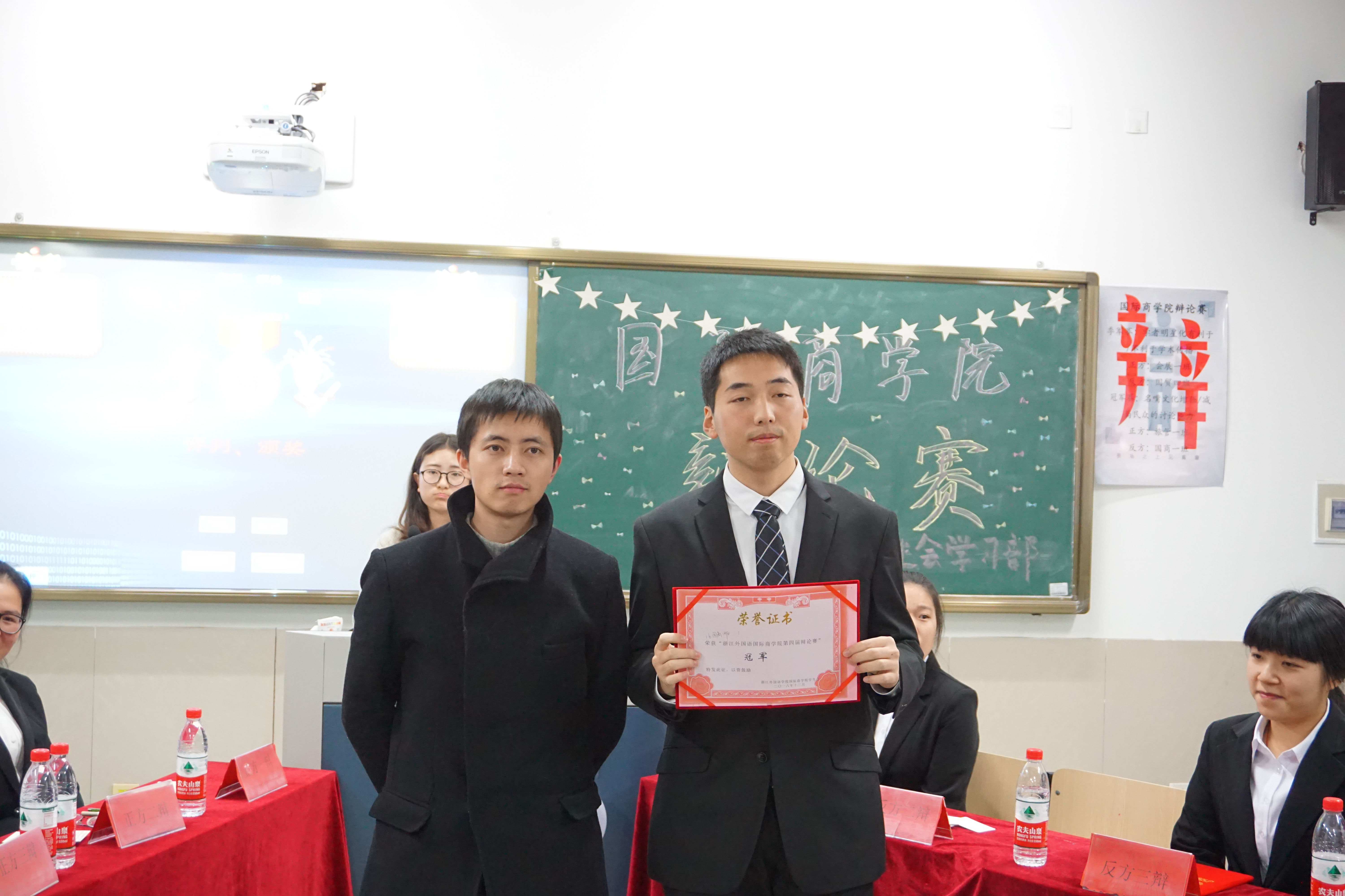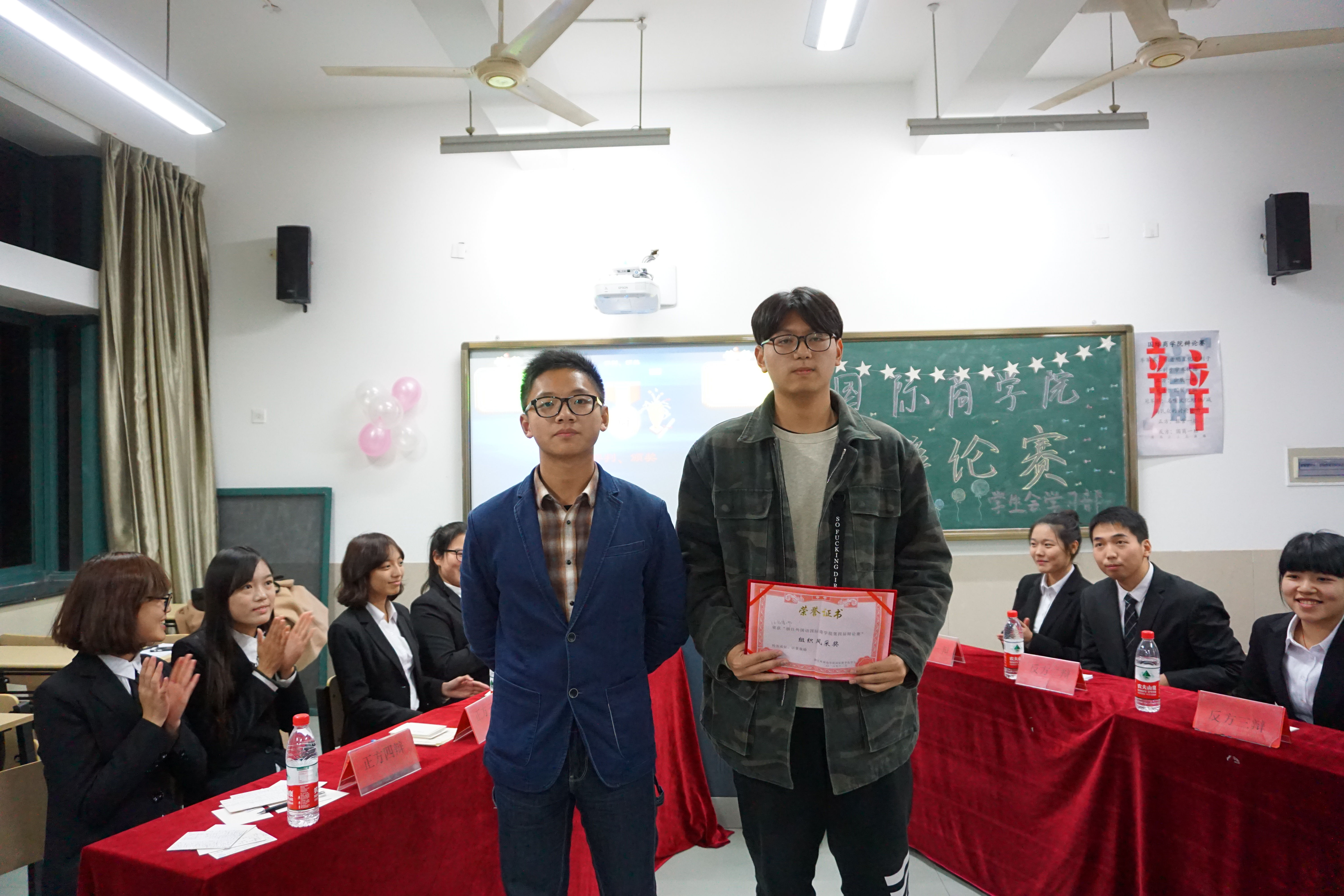 经过激烈角逐,最终,16国商1班辩论队更胜一筹,将‘新生杯’冠军收入囊中,16旅管1班、16会展1班名列亚、季军。评委分别为获奖班级颁奖,进行合影留念。